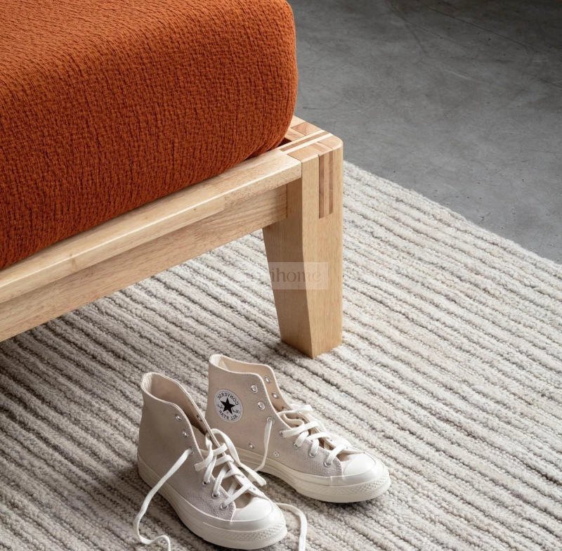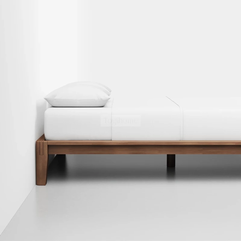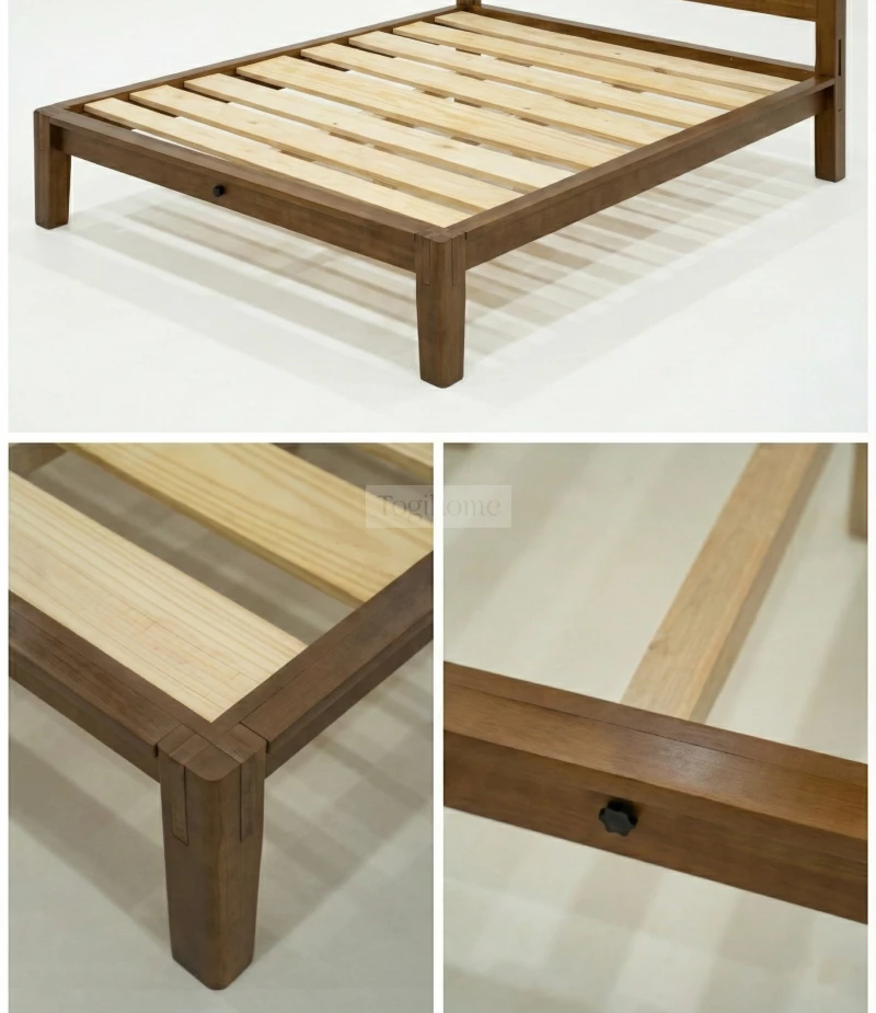 Bên dưới vẻ ngoài tối giản là hệ thống chịu lực mạnh mẽ từ các thanh nan giường gỗ thông tự nhiên.