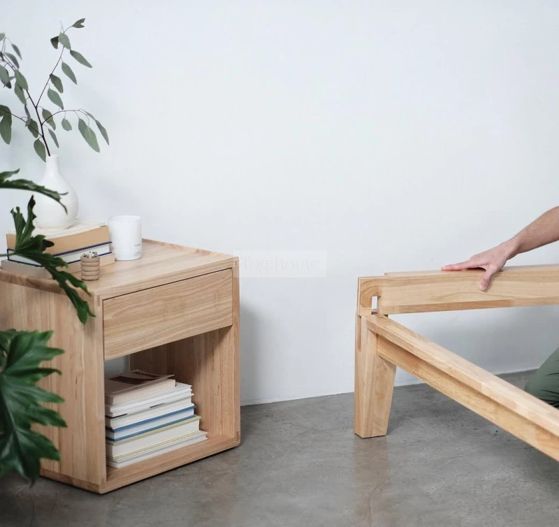 Giường Gỗ Tự Nhiên Phong Cách Tối Giản, Lắp Ghép Không Ốc Vít - Mã GN106