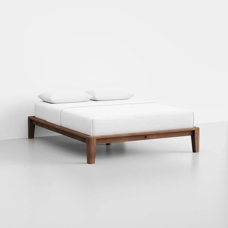 Thẩm mỹ tinh tế: Các khớp mộng lộ thiên ở 4 góc giường tạo nên điểm nhấn thủ công độc đáo, mộc mạc nhưng đầy sang trọng.