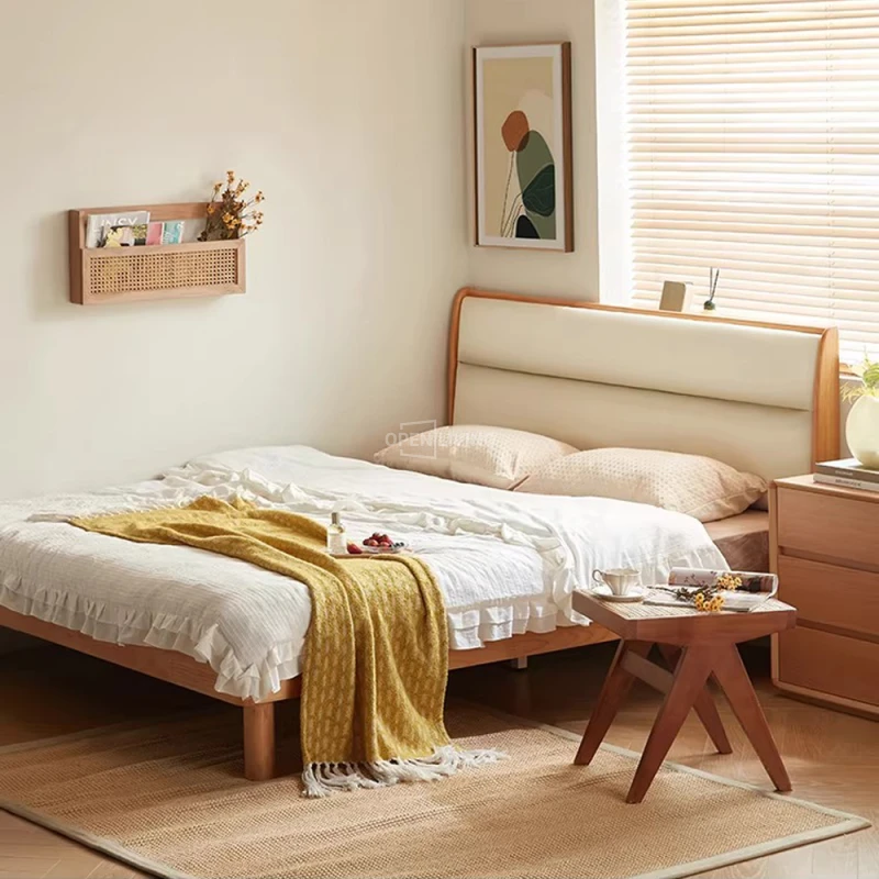 Giường Ngủ Gỗ Cao Su Phủ Veneer Sồi Đầu Tựa Da Cao Cấp Cho Phòng Ngủ Tinh Tế Openliving GN774