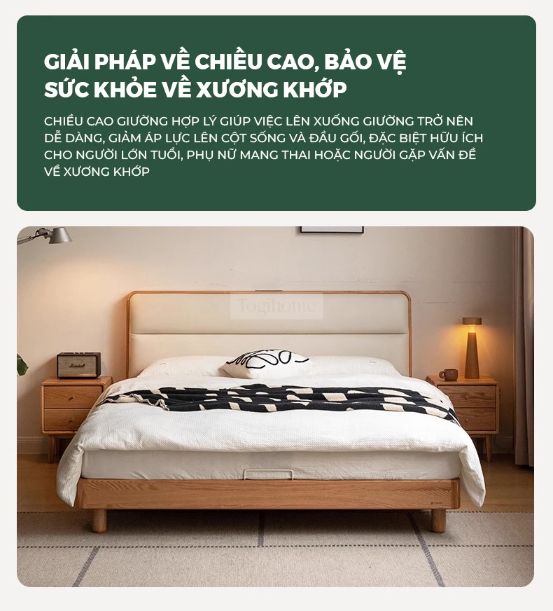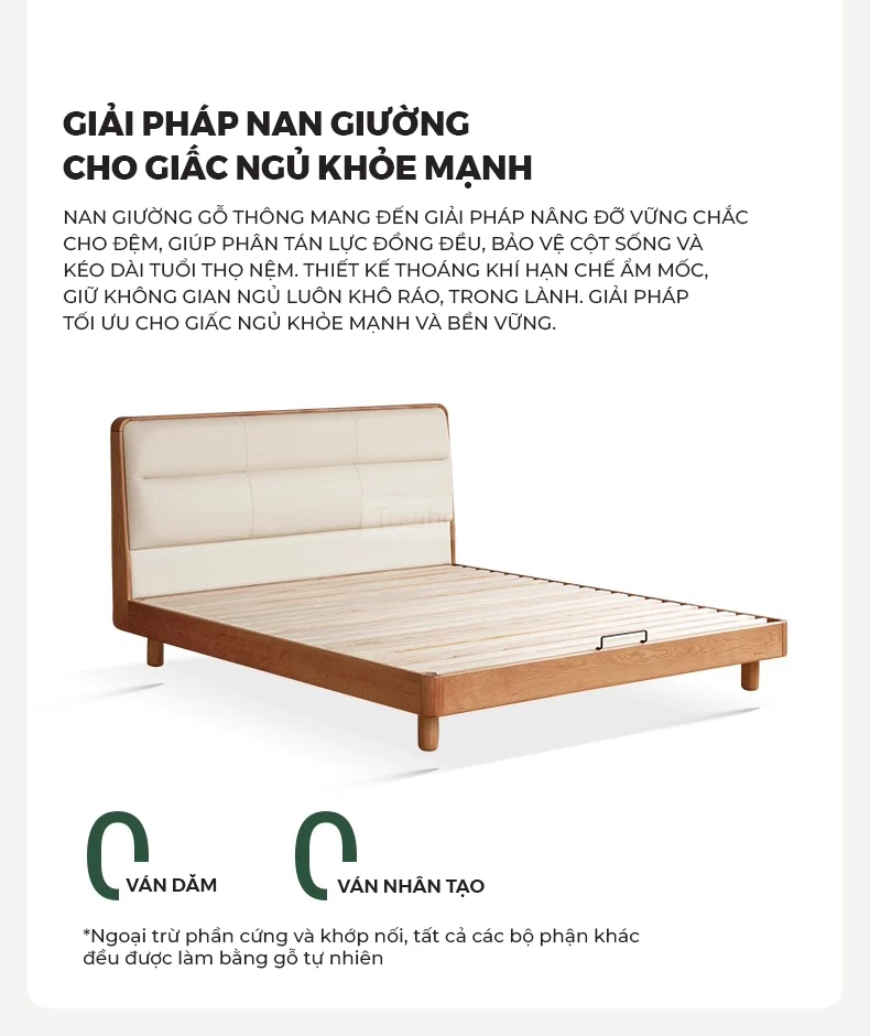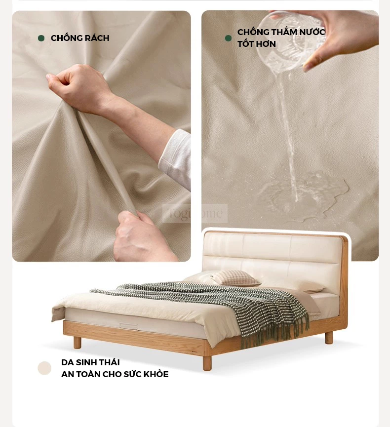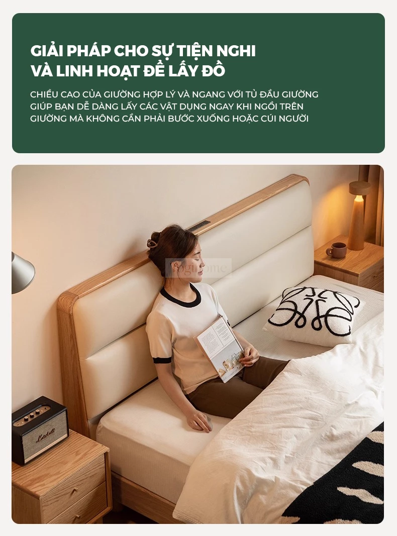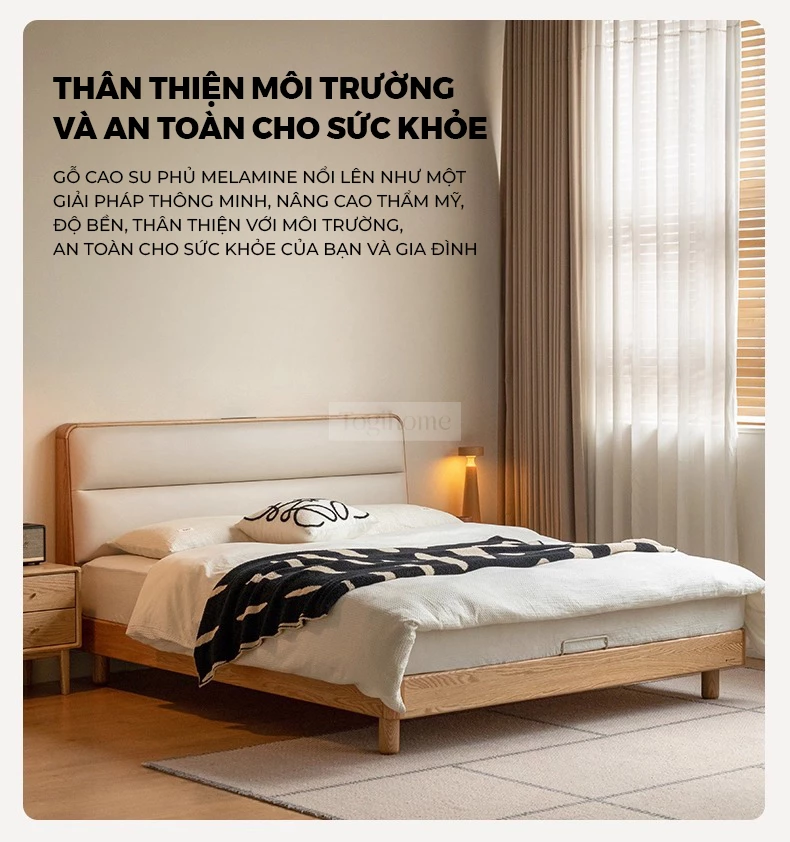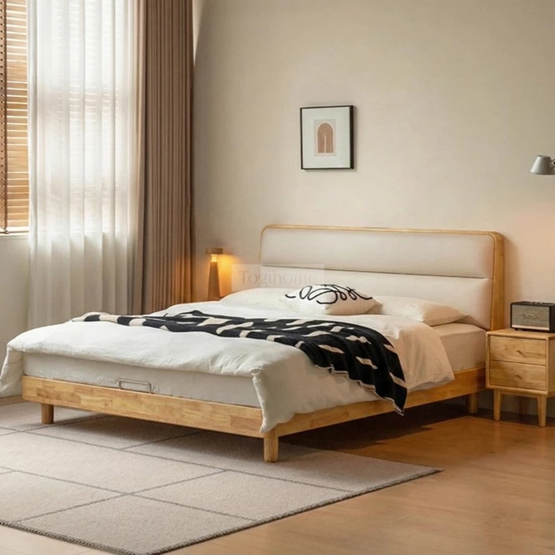 Giường Ngủ Gỗ Cao Su Tự Nhiên Bọc Nệm Đầu Giường – Khung Dày 14cm, Chắc Chắn, Êm Ái Không Kêu - Mã GN310