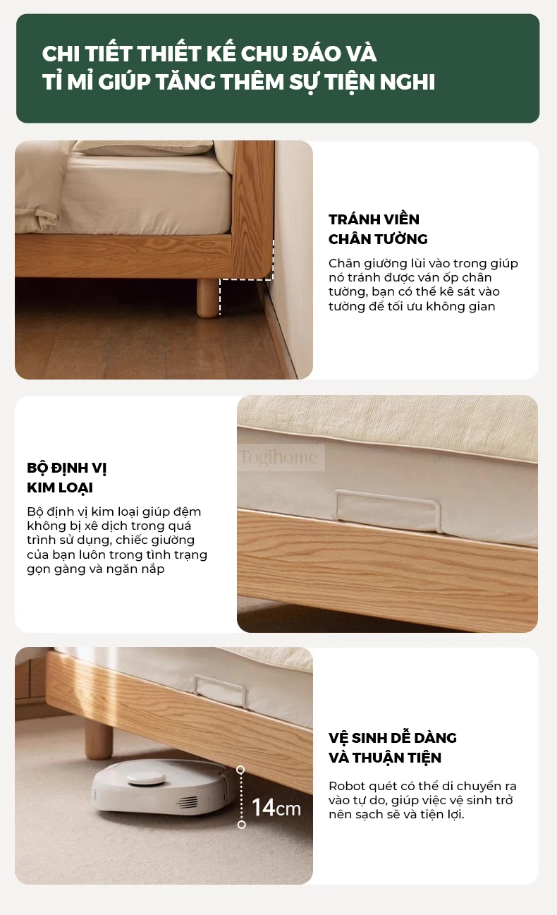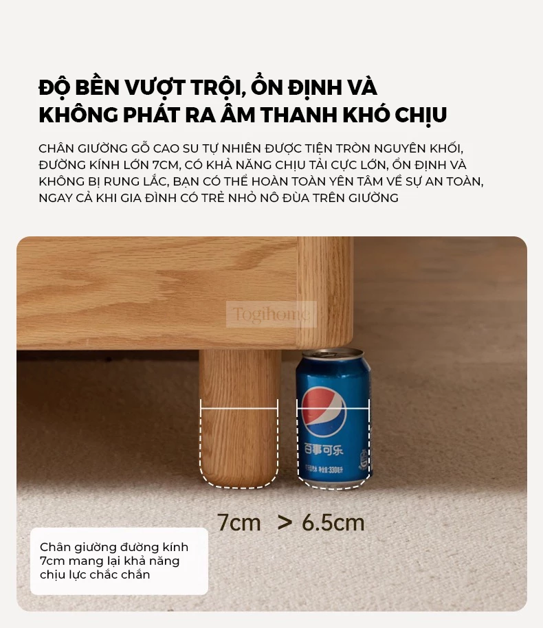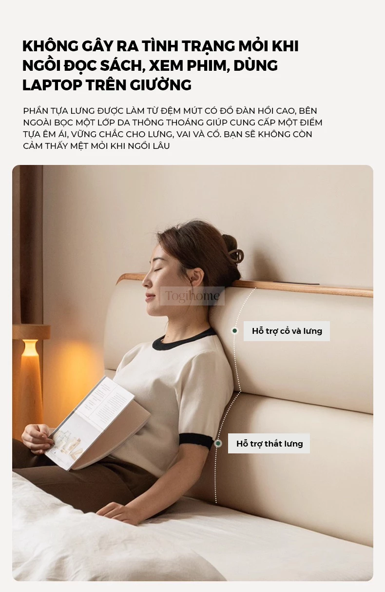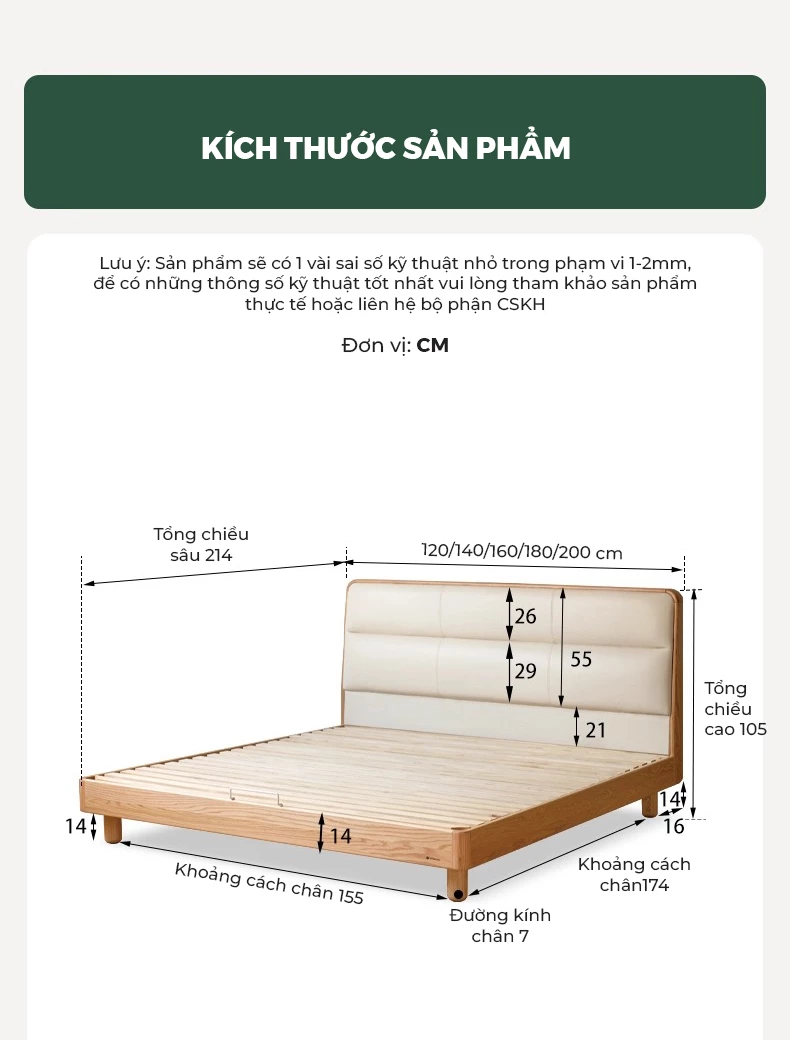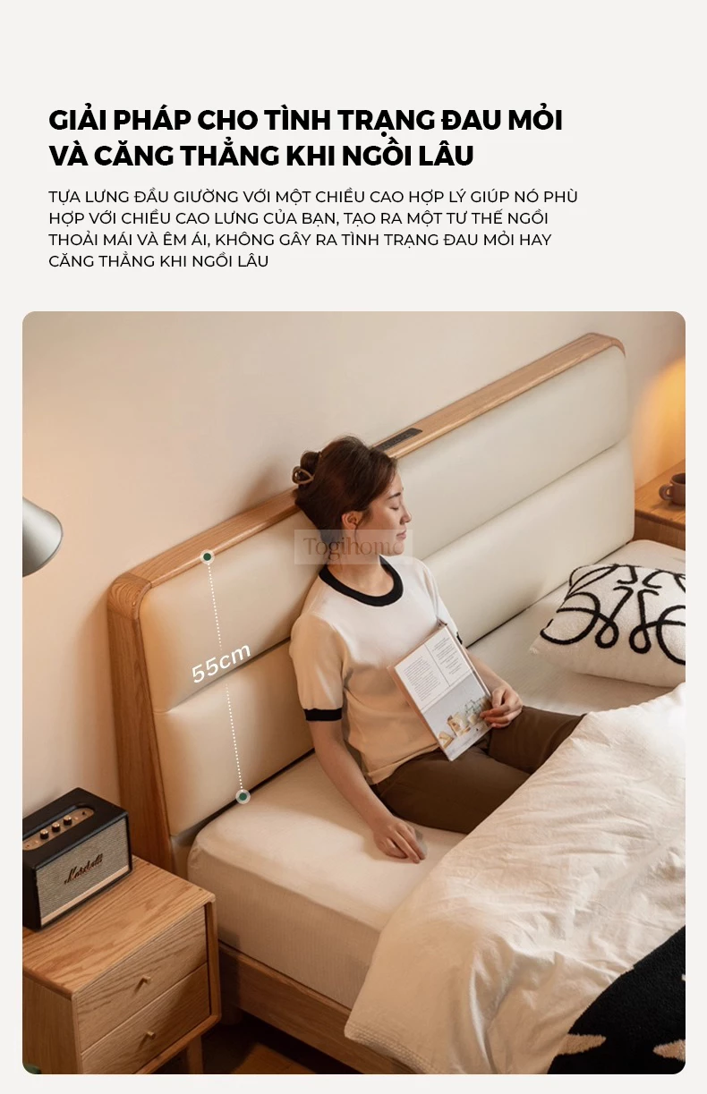 Giường Ngủ Gỗ Cao Su Tự Nhiên Bọc Nệm Đầu Giường – Khung Dày 14cm, Chắc Chắn, Êm Ái Không Kêu - Mã GN310
