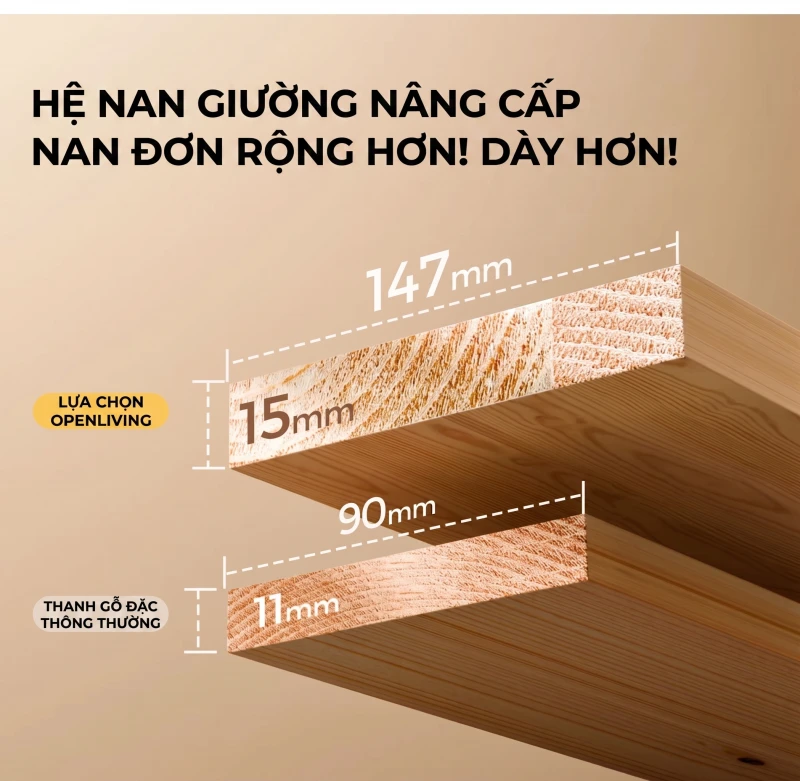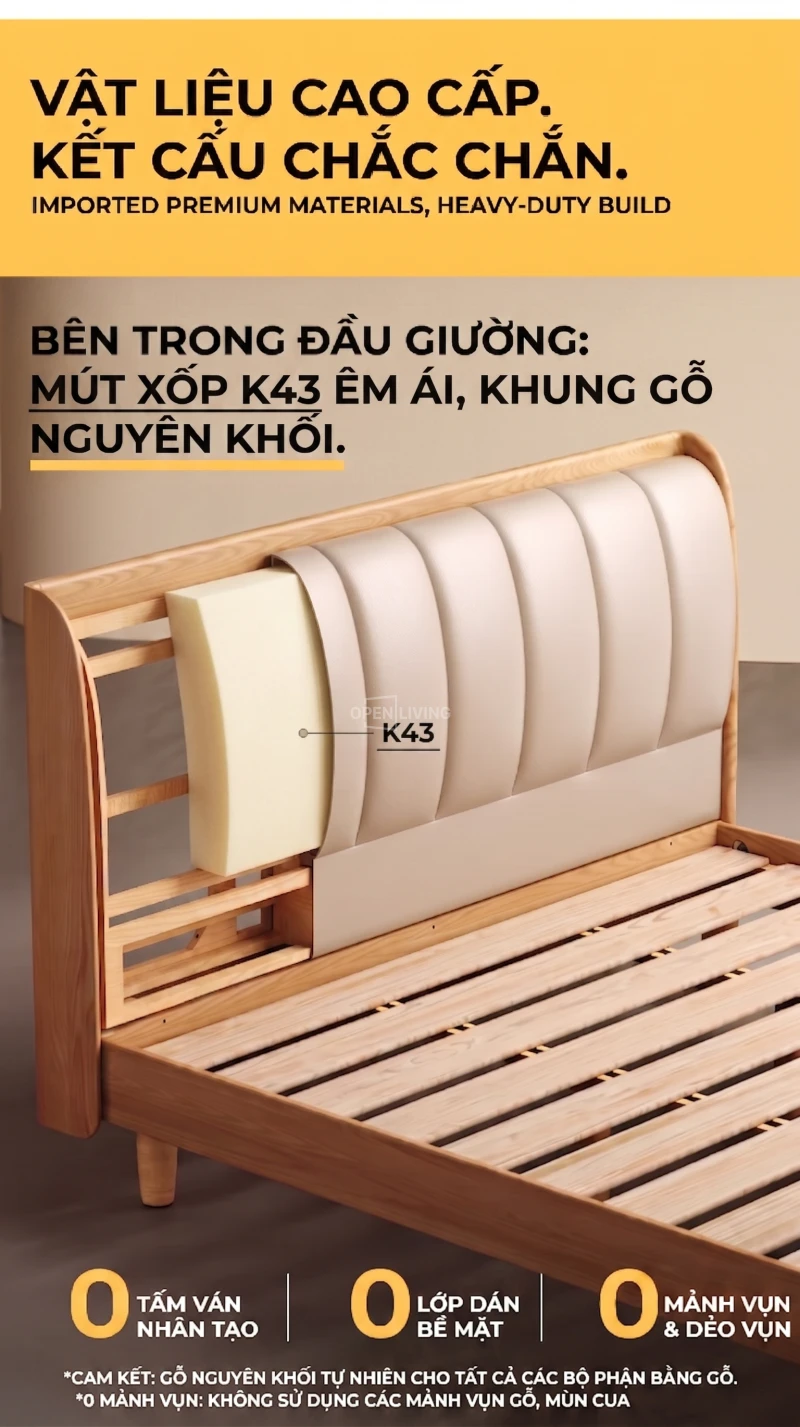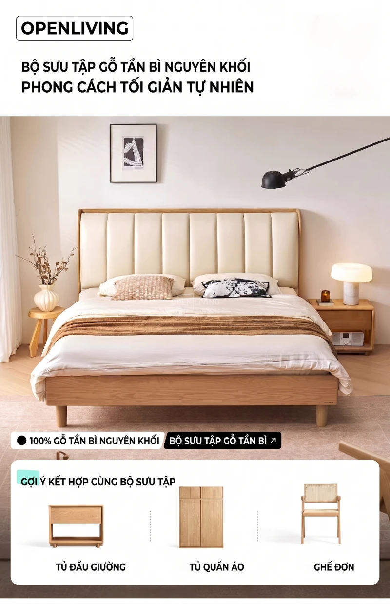 Nâng tầm không gian phòng ngủ với giường gỗ tự nhiên OpenLiving, sự kết hợp hoàn hảo giữa vẻ đẹp sang trọng, mộc mạc và độ bền vượt trội. Sản phẩm được thiết kế thông minh theo mô hình lắp ráp linh hoạt, giúp bạn có thể dễ dàng tự hoàn thiện ngay tại nhà.