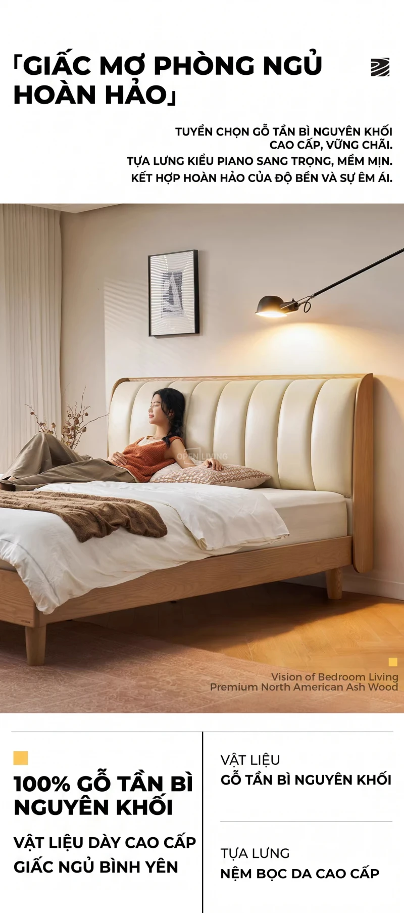 Giường Ngủ Gỗ Tần Bì Nguyên Khối Thiết Kế Hiện Đại Dáng Đẹp Tinh Gọn - Mã GN211