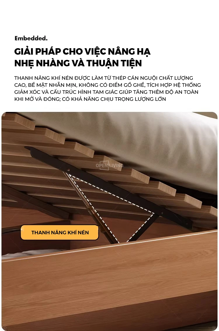 Giường Ngủ Gỗ Tự Nhiên Có Ngăn Chứa Đồ Nâng Hạ Thông Minh Openliving GN16g