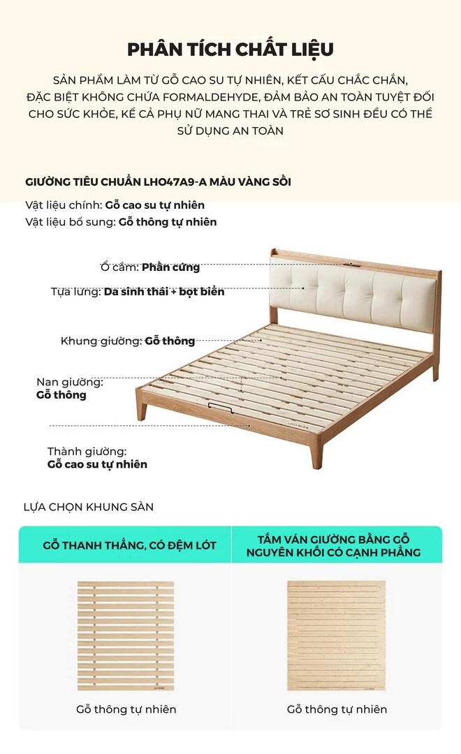 Giường Ngủ Gỗ Tự Nhiên CV111 là lựa chọn lý tưởng để kiến tạo một không gian phòng ngủ thanh lịch, ấm cúng và tràn ngập sự tinh tế. Được chế tác từ gỗ tự nhiên cao cấp, chiếc giường này không chỉ nổi bật bởi độ bền vượt trội mà còn mang lại vẻ đẹp mộc mạc, gần gũi và hoàn toàn an toàn cho sức khỏe. Với thiết kế tinh giản, hiện đại cùng các đường nét mềm mại, CV111 tạo nên một cảm giác nhẹ nhàng, thư thái, giúp bạn tận hưởng những giấc ngủ sâu và trọn vẹn. Đây không chỉ là một món đồ nội thất bền vững mà còn là điểm nhấn thẩm mỹ, mang hơi thở của sự yên bình, tối giản vào không gian sống của bạn.