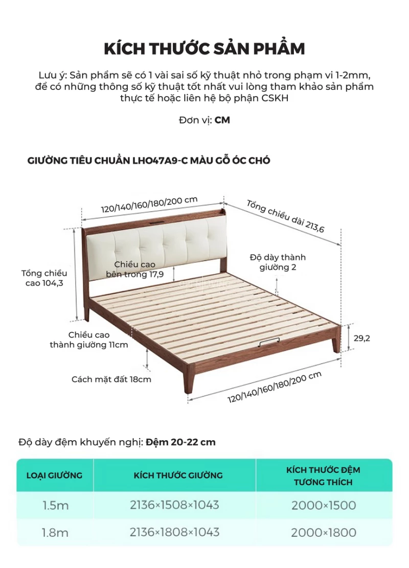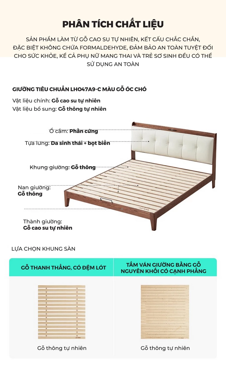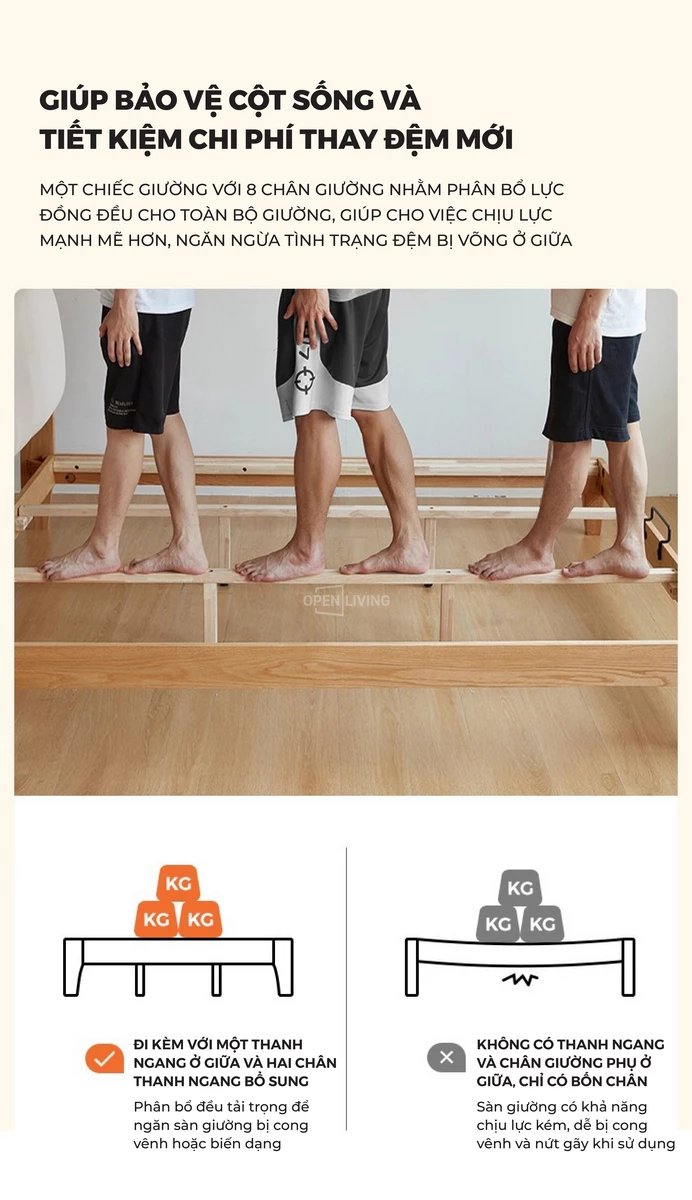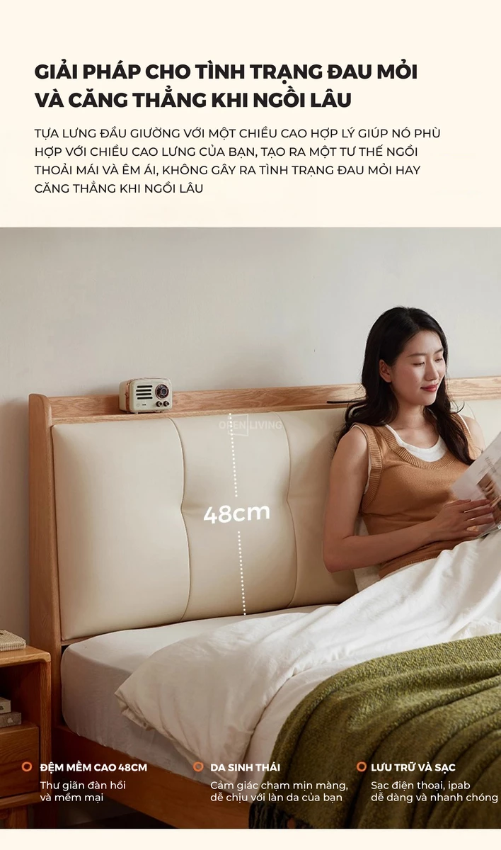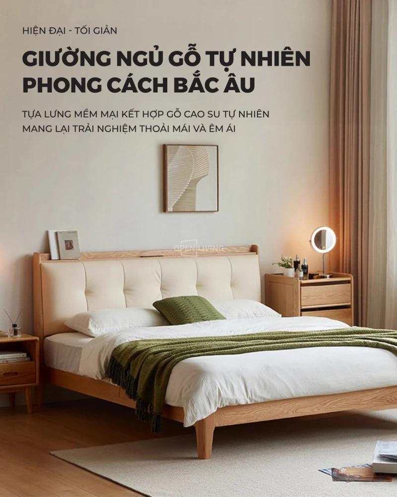 Giường ngủ gỗ tự nhiên hiện đại Openliving OGG058