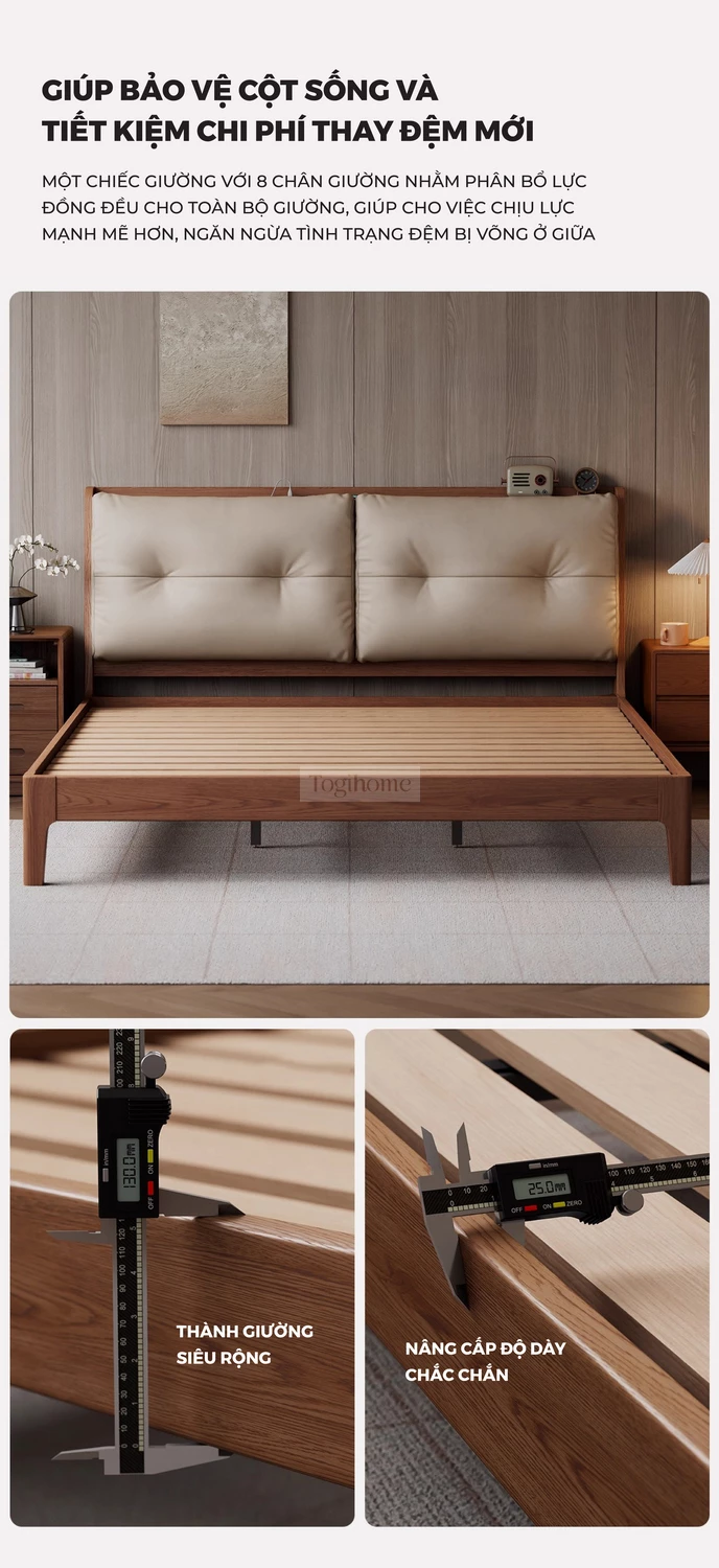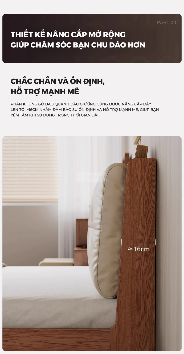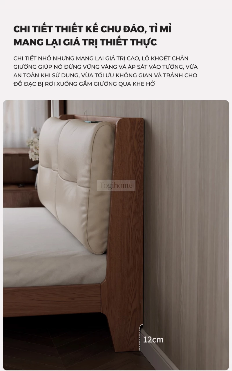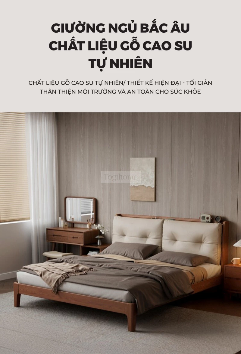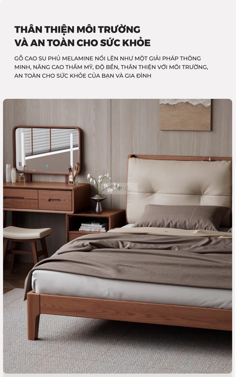 Giường Ngủ Gỗ Tự Nhiên Kiểu Hàn CV310 là lựa chọn lý tưởng để kiến tạo một không gian phòng ngủ thanh lịch, ấm cúng và tràn ngập sự tinh tế. Được chế tác từ gỗ tự nhiên cao cấp, chiếc giường này không chỉ nổi bật bởi độ bền vượt trội mà còn mang lại vẻ đẹp mộc mạc, gần gũi và hoàn toàn an toàn cho sức khỏe. Với thiết kế tinh giản, hiện đại theo phong cách Hàn Quốc cùng các đường nét mềm mại, CV310 tạo nên một cảm giác nhẹ nhàng, thư thái, giúp bạn tận hưởng những giấc ngủ sâu và trọn vẹn. Đây không chỉ là một món đồ nội thất bền vững mà còn là điểm nhấn thẩm mỹ, mang hơi thở của sự yên bình, tối giản vào không gian sống của bạn. Đặc biệt, sản phẩm có thể tích hợp ổ cắm điện và cổng sạc USB ngay trên đầu giường, mang lại sự tiện lợi tối đa trong sinh hoạt. Lưu ý: tính năng ổ cắm sẽ phát sinh chi phí đi kèm từ 200.000đ - 250.000đ.