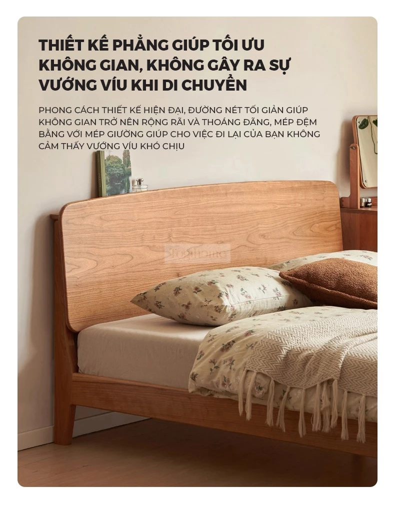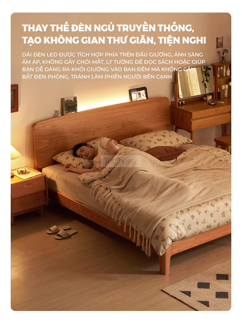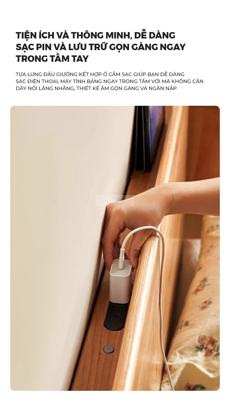 Giường Ngủ Gỗ Tự Nhiên Luna Phong Cách Japandi – Mã GM123 mang vẻ đẹp tinh tế và tối giản, phù hợp cho không gian sống hiện đại. Đầu giường cong vòm mềm mại tạo cảm giác thư giãn, chất liệu gỗ tự nhiên bền đẹp, thân thiện với môi trường. Chiều cao giường được tính toán hợp lý, kết hợp ổ điện âm tiện lợi giúp sạc thiết bị ngay bên cạnh. Đường nét bo tròn và mảng gỗ liền mạch tôn lên vẻ ấm áp, nhẹ nhàng nhưng sang trọng. Một lựa chọn lý tưởng cho những ai yêu thích sự an yên, tinh gọn và tiện nghi trong từng chi tiết. Sản phẩm có thể tích hợp ổ cắm điện và cổng sạc USB ngay trên đầu giường, mang lại sự tiện lợi tối đa trong sinh hoạt. Lưu ý: tính năng ổ cắm sẽ phát sinh chi phí đi kèm từ 200.000đ - 250.000đ.