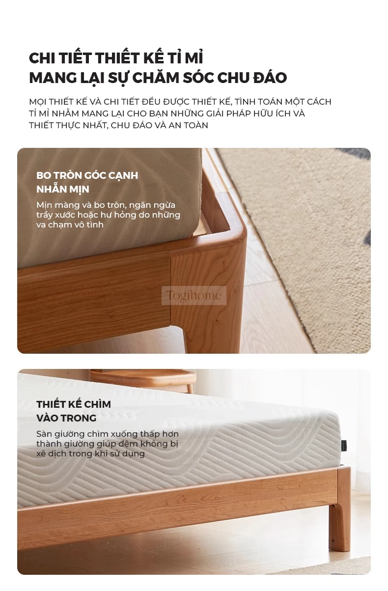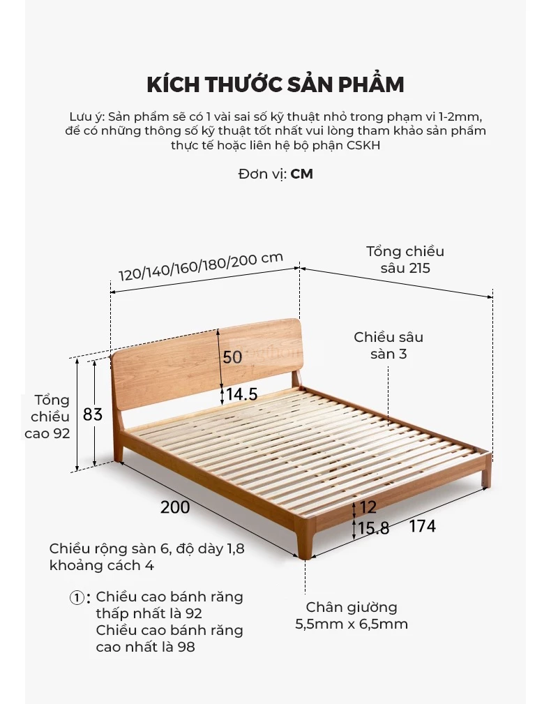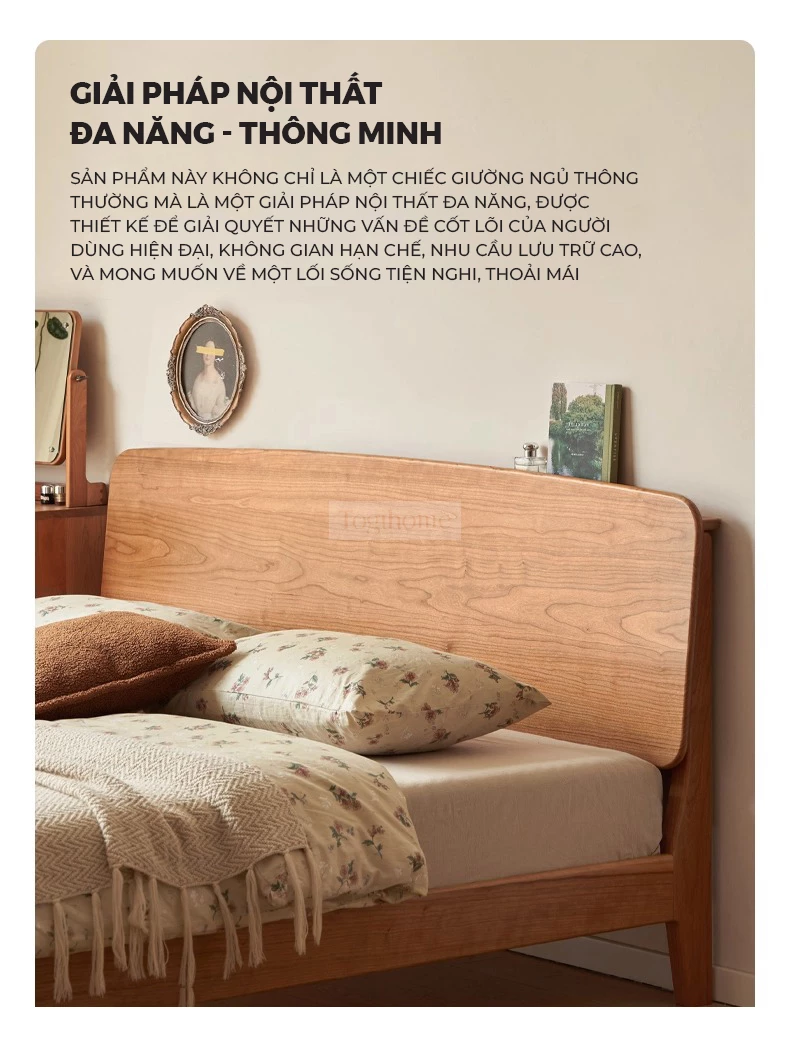 Giường Ngủ Gỗ Tự Nhiên Luna, Đầu Giường Cong Vòm Tối Giản Phong Cách Japandi - Mã GM123