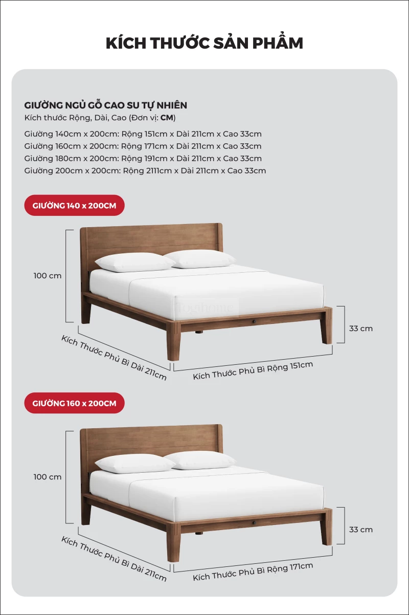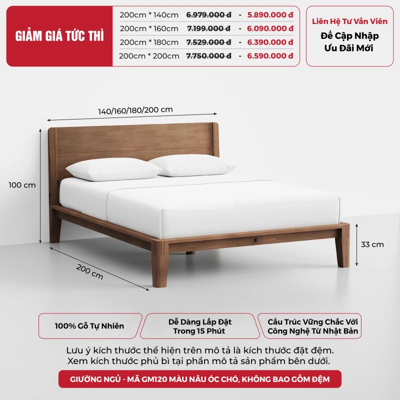 Giường Ngủ Gỗ Tự Nhiên Togismart Chống Rung Lắc Không Tiếng Ồn Cho Giấc Ngủ Ngon - Mã GM120