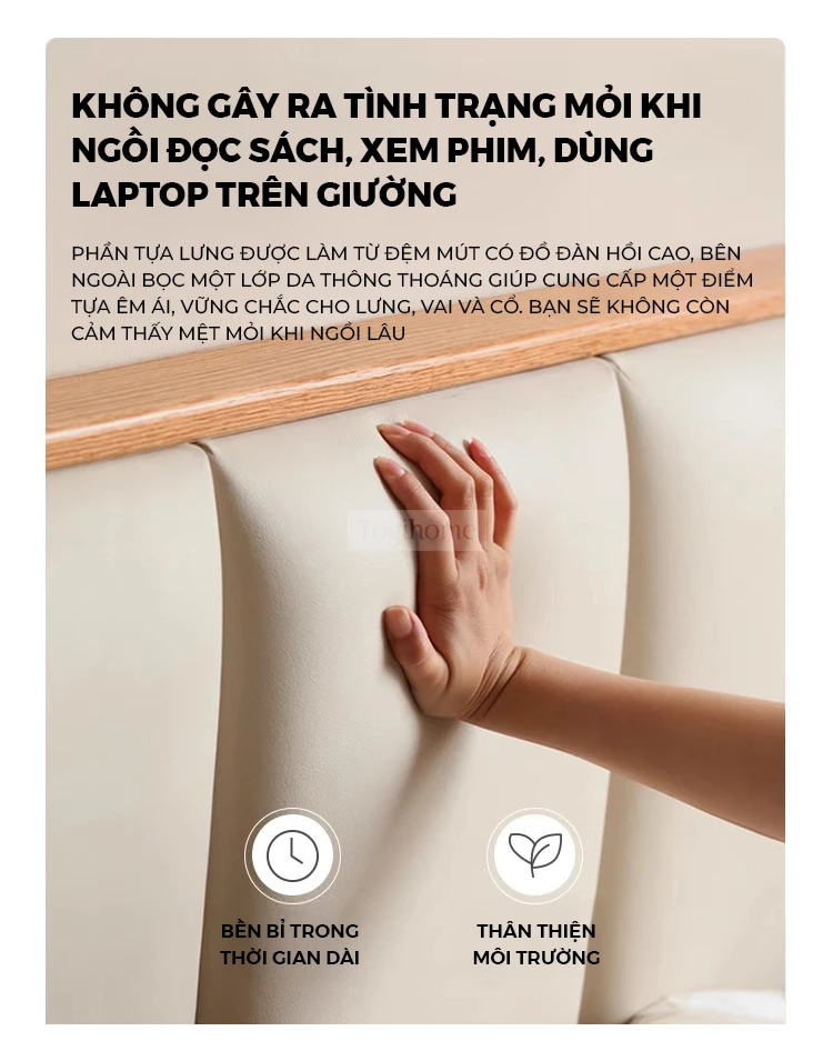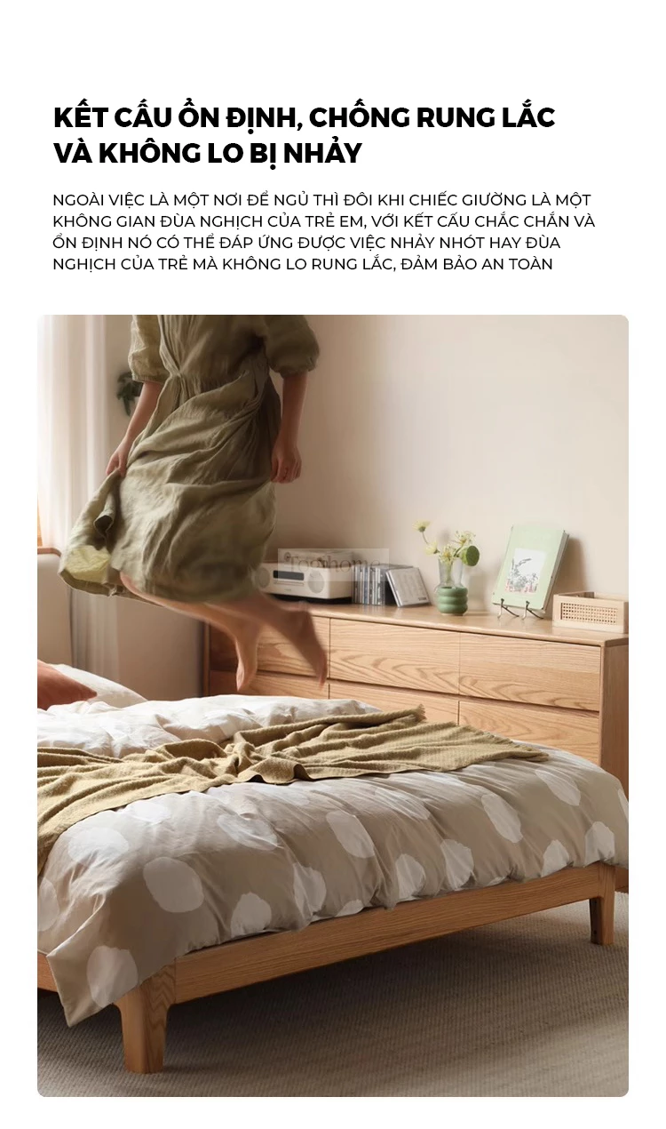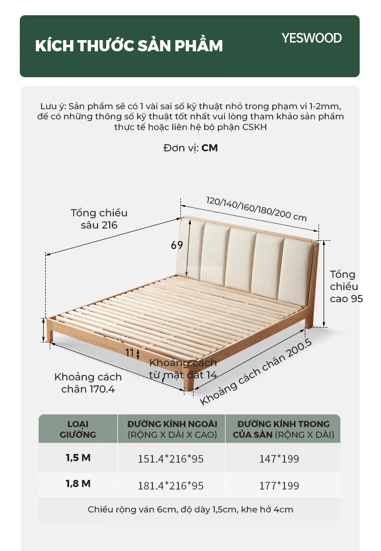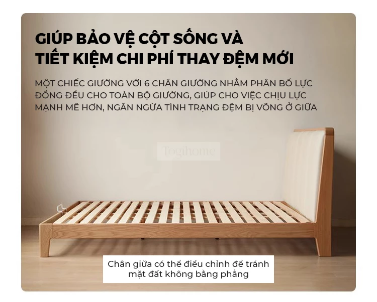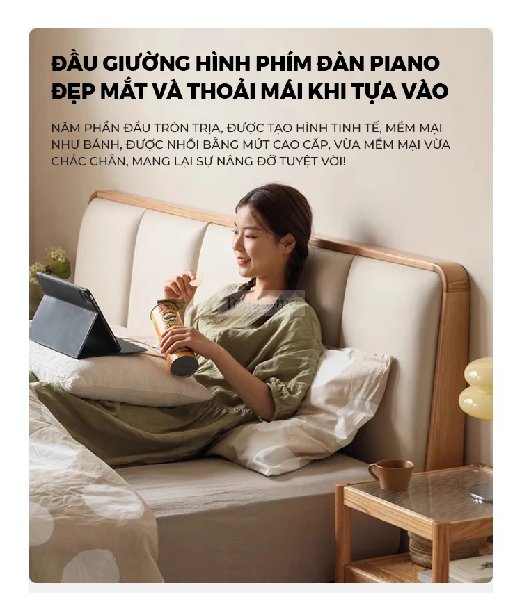 Giường Ngủ Japandi Rin Gỗ Cao Su Tự Nhiên, Đầu Giường Da Bọc Đệm Mút Cao Cấp - Mã GM118
