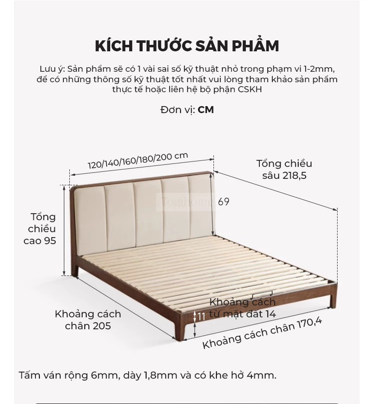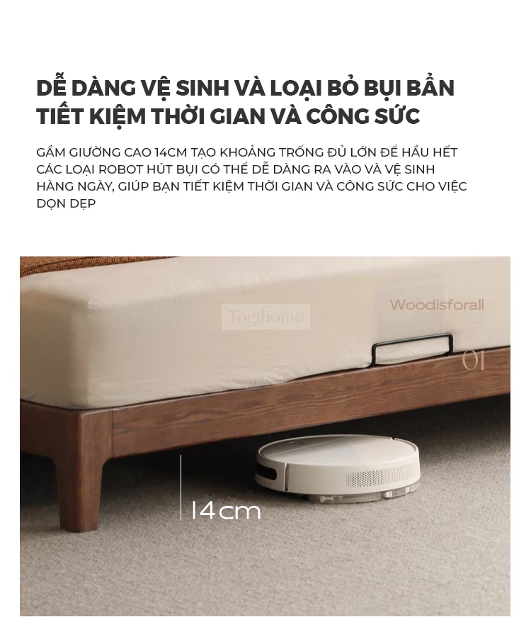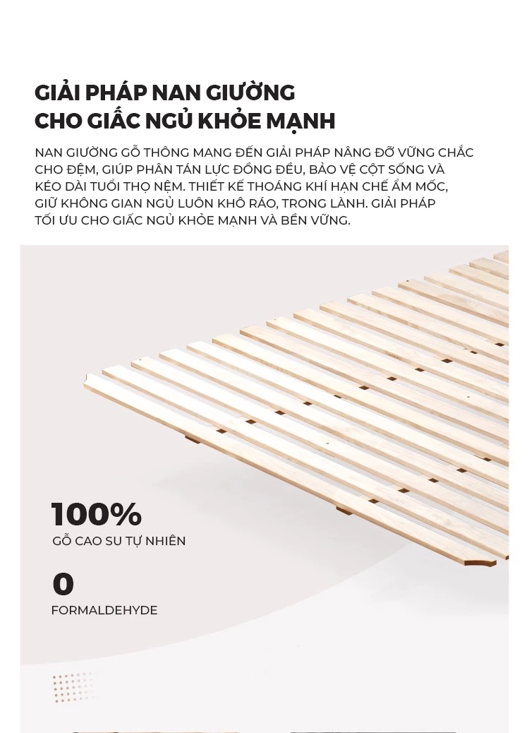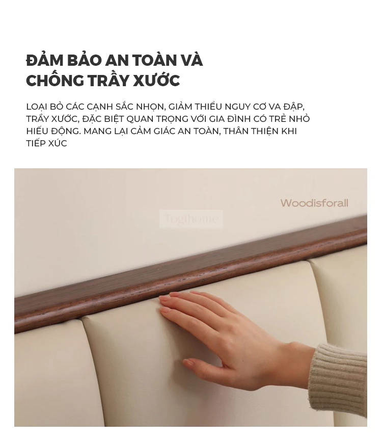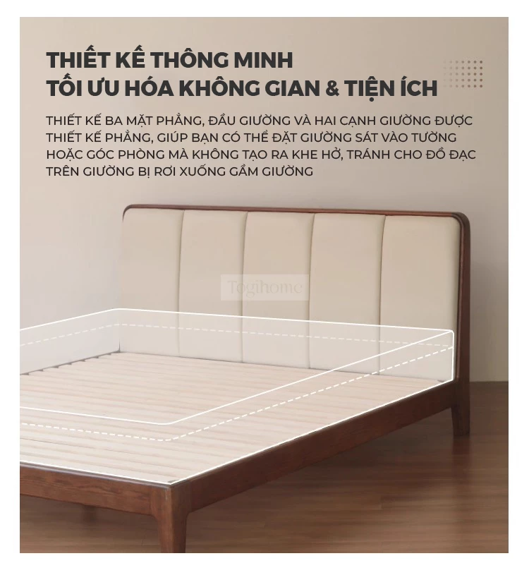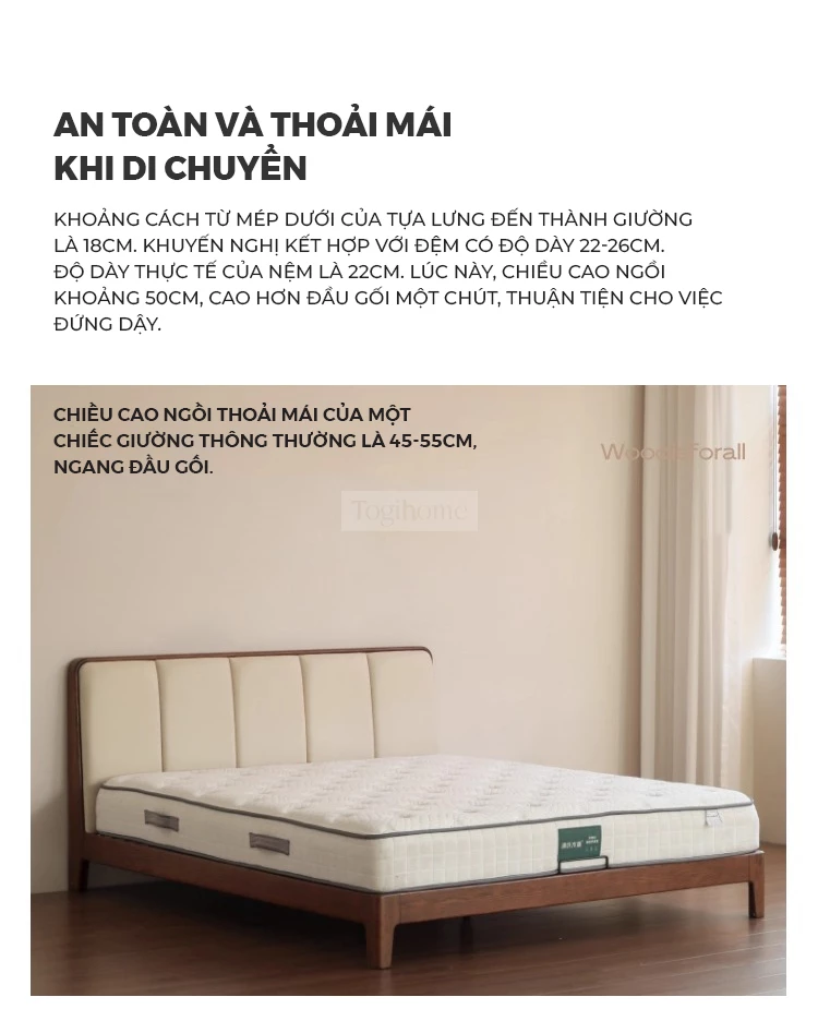 Giường Ngủ Japandi Rin Gỗ Cao Su Tự Nhiên, Đầu Giường Da Bọc Đệm Mút Cao Cấp - Mã GM119