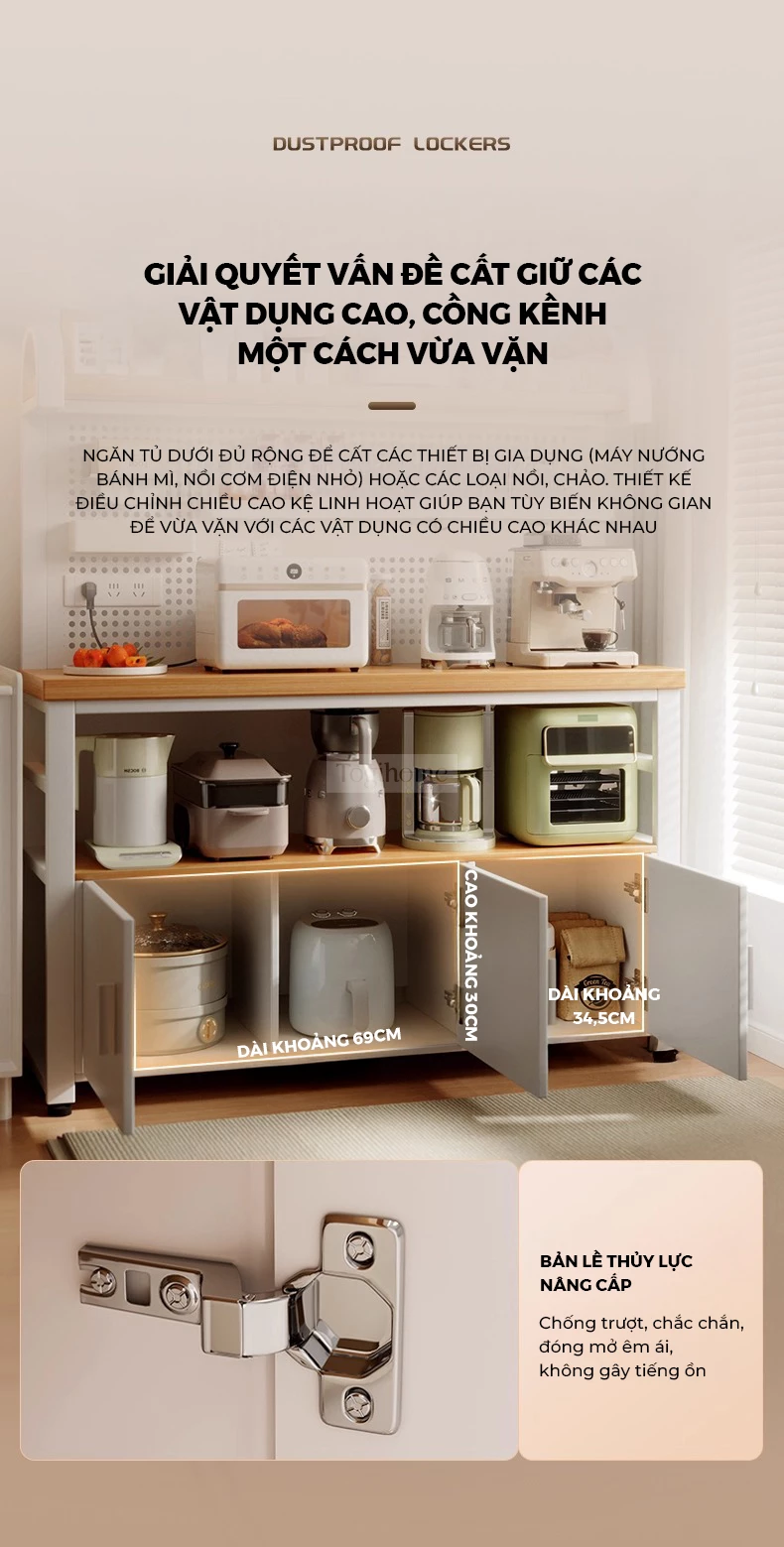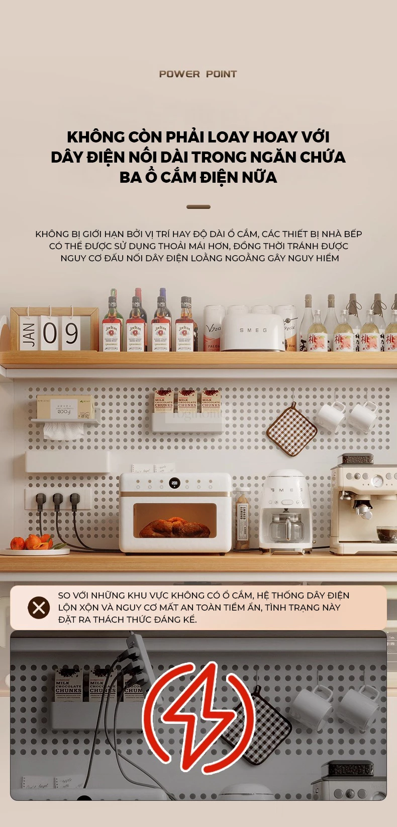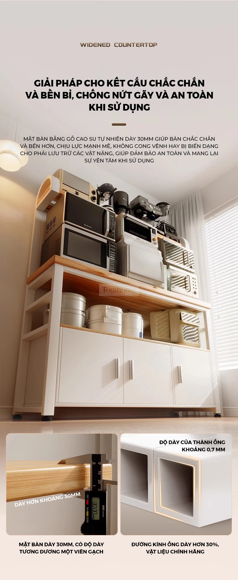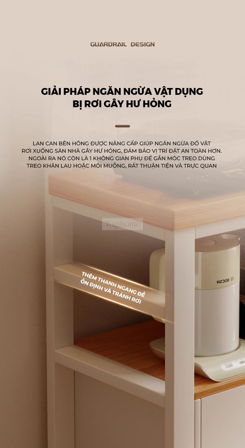 Kệ Bếp Bestseller Togismart Tích Hợp Bảng Treo Đồ – Mã KT115 là giải pháp lưu trữ tối ưu cho mọi không gian bếp, giúp sắp xếp gọn gàng thiết bị gia dụng và tăng diện tích sử dụng. Thiết kế chắc chắn, phân tầng khoa học, bảng treo đồ tiện lợi phù hợp với các nhu cầu nấu nướng hiện đại. Chất liệu bền đẹp, dễ lau chùi, phù hợp căn hộ nhỏ đến nhà lớn. Sản phẩm hỗ trợ tối ưu hóa khu vực bếp, mang lại sự gọn gàng và thẩm mỹ. Lưu ý: Phụ kiện ổ điện và móc treo đồ không bao gồm trong giá niêm yết, vui lòng liên hệ tư vấn viên để mua kèm theo nhu cầu.
