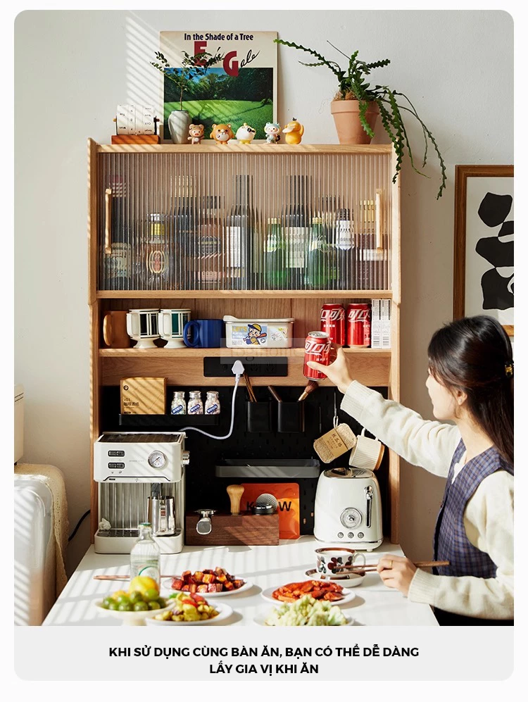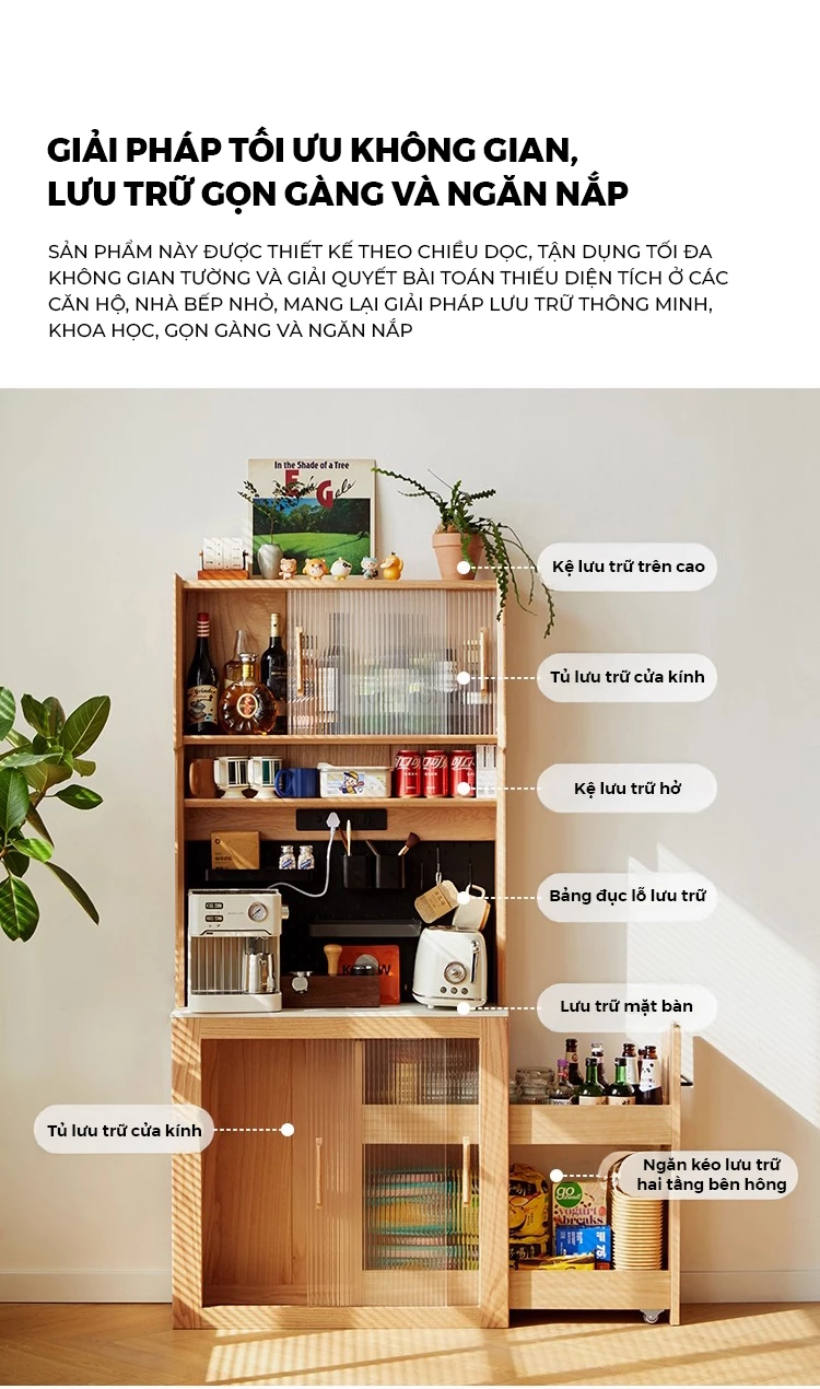 Kệ Bếp Gỗ Đa Ngăn Lưu Trữ Kết Hợp Bàn Ăn KG141