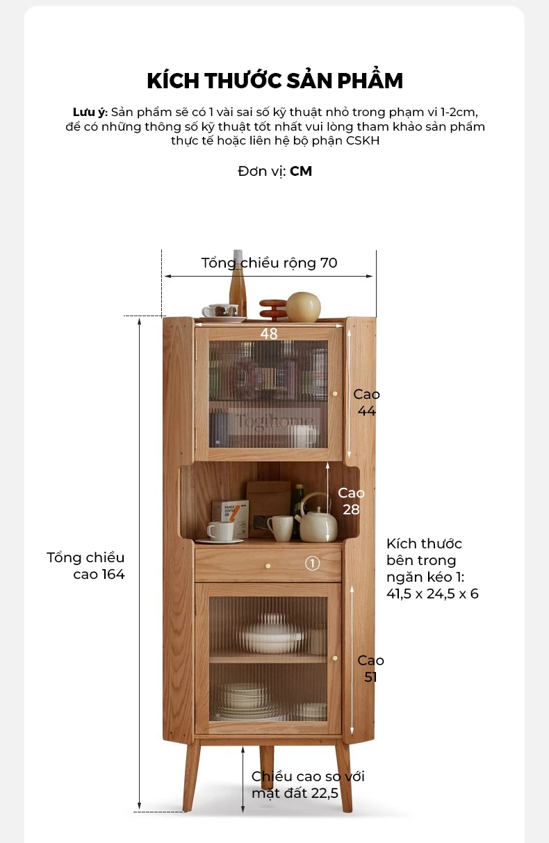 Kệ Bếp Góc Togismart Có Ngăn Tủ Cánh Kính - Mã KG138