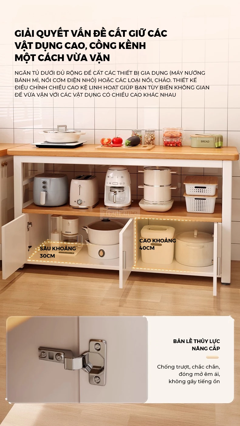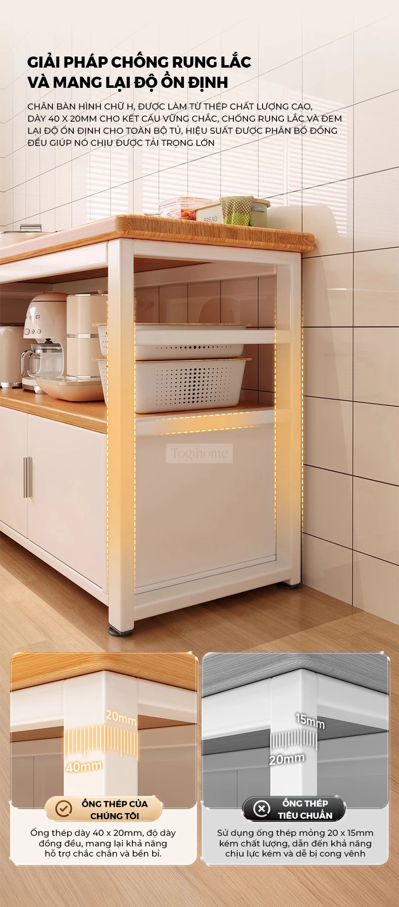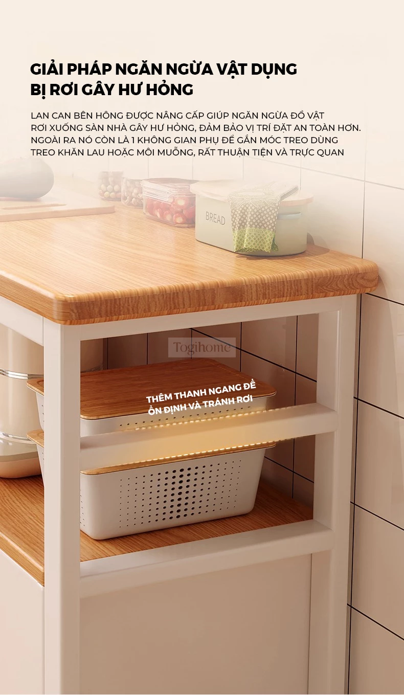 Kệ Bếp Thép Hộp Sơn Tĩnh Điện Togismart Có Ngăn Tủ Đóng - Mã KG155