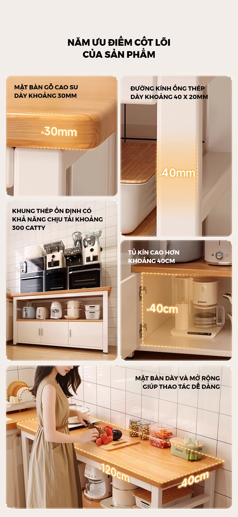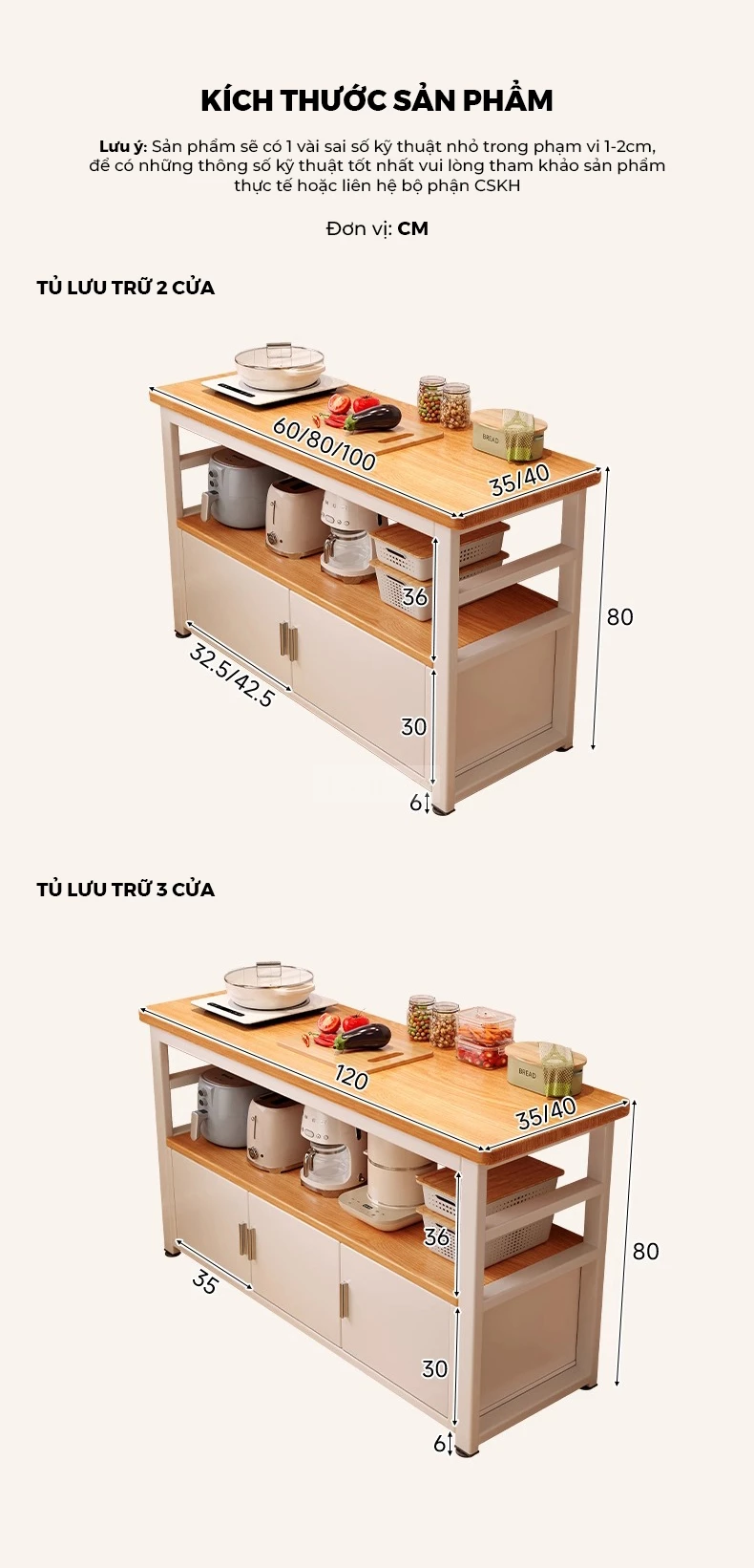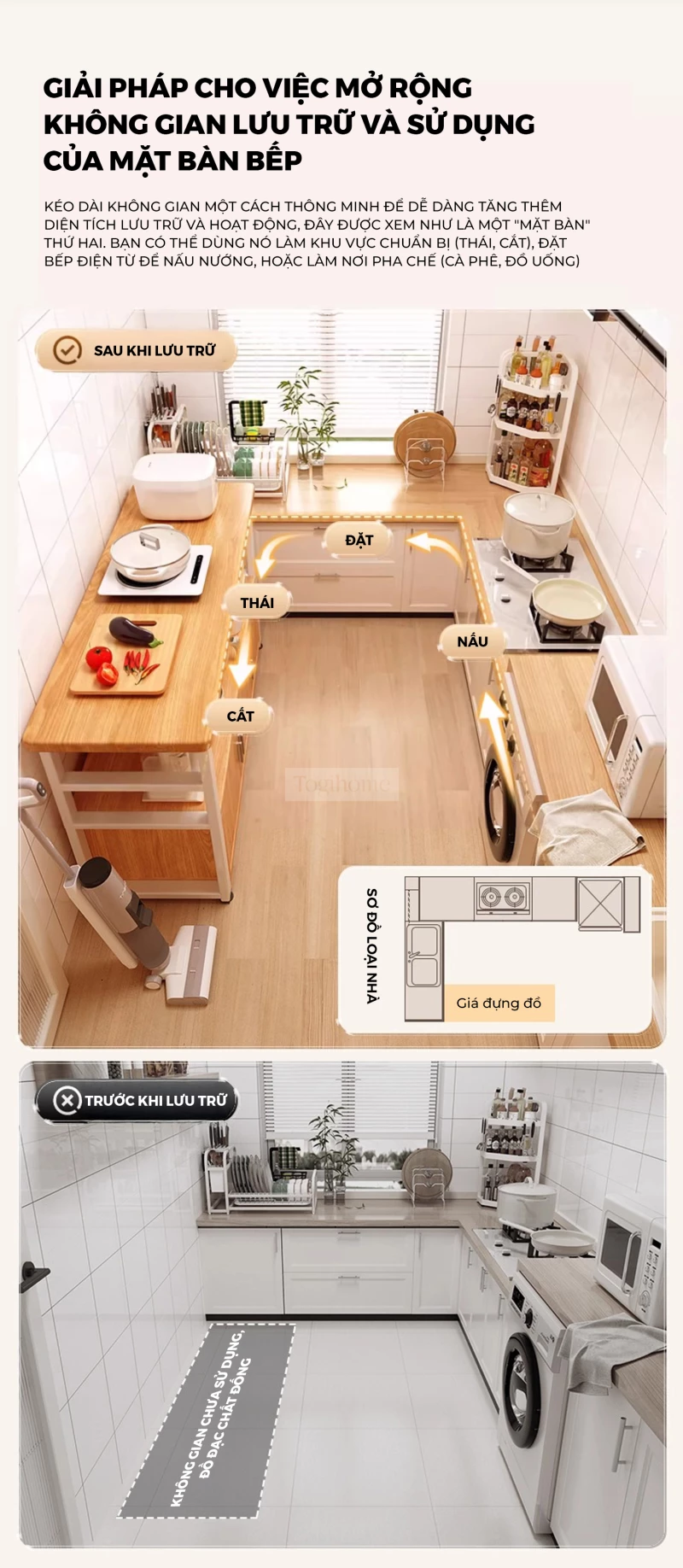 Kệ Bếp Thép Hộp Sơn Tĩnh Điện Togismart Có Ngăn Tủ Đóng - Mã KG155