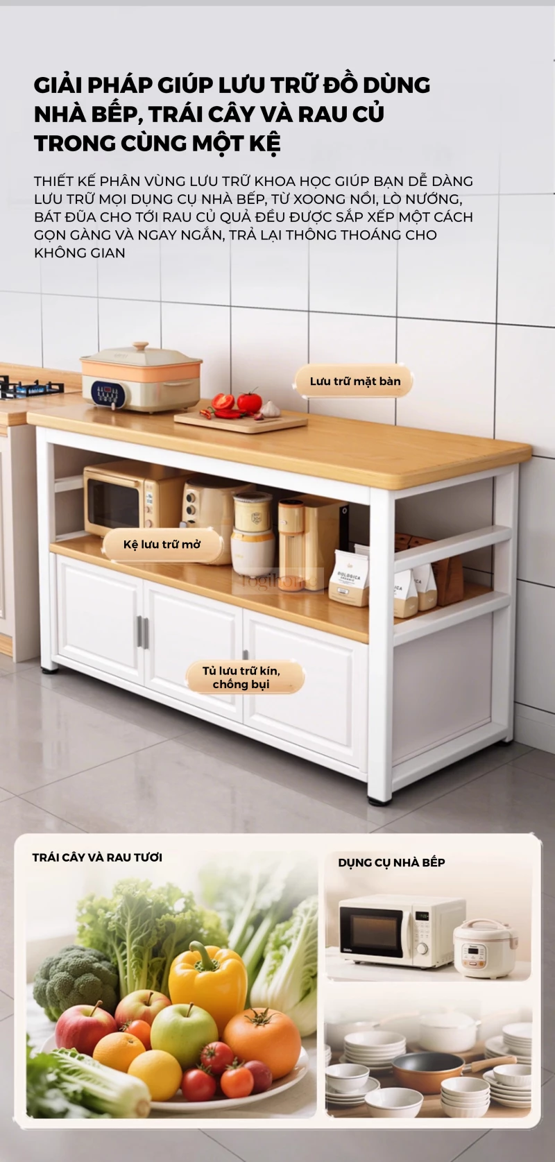 Kệ Bếp Thép Sơn Tĩnh Điện Togismart Thiết Kế Ngăn Tủ Lưu Trữ Xoong Nồi Hoa Văn Cánh Tủ Tân Cổ Điển - MÃ KT116