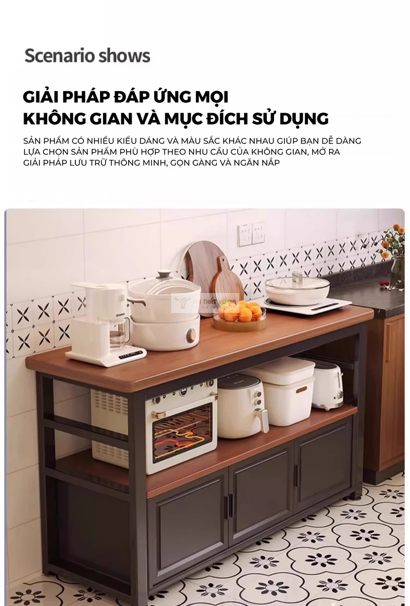 Kệ bếp Vũ Gia KC90 tích hợp tủ đa năng là giải pháp lưu trữ hoàn hảo. Thiết kế thông minh giúp sắp xếp đồ dùng gọn gàng, kín đáo, mang lại vẻ đẹp hiện đại, sang trọng và sự tiện nghi tuyệt đối cho không gian bếp của bạn.
