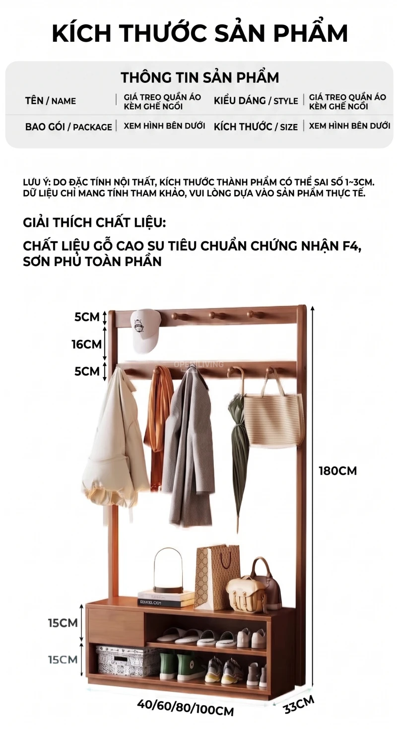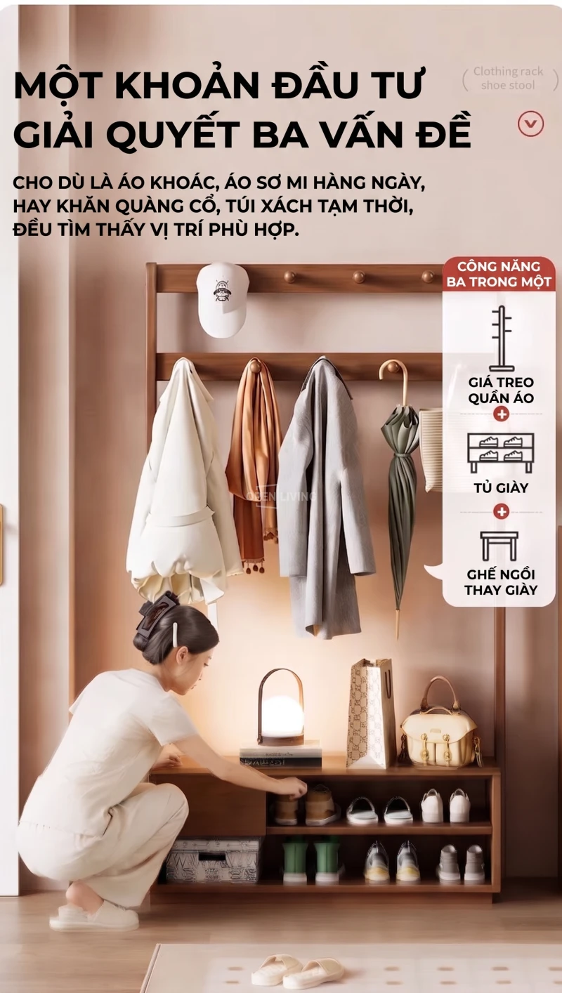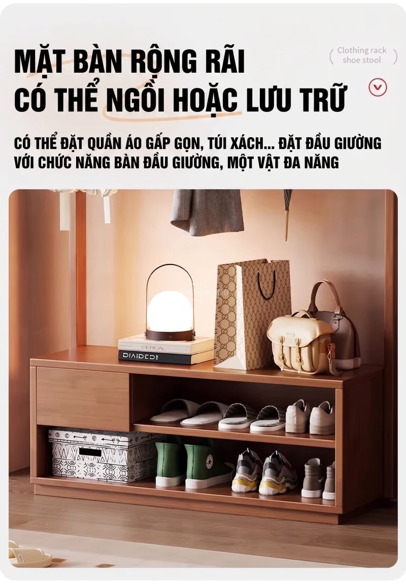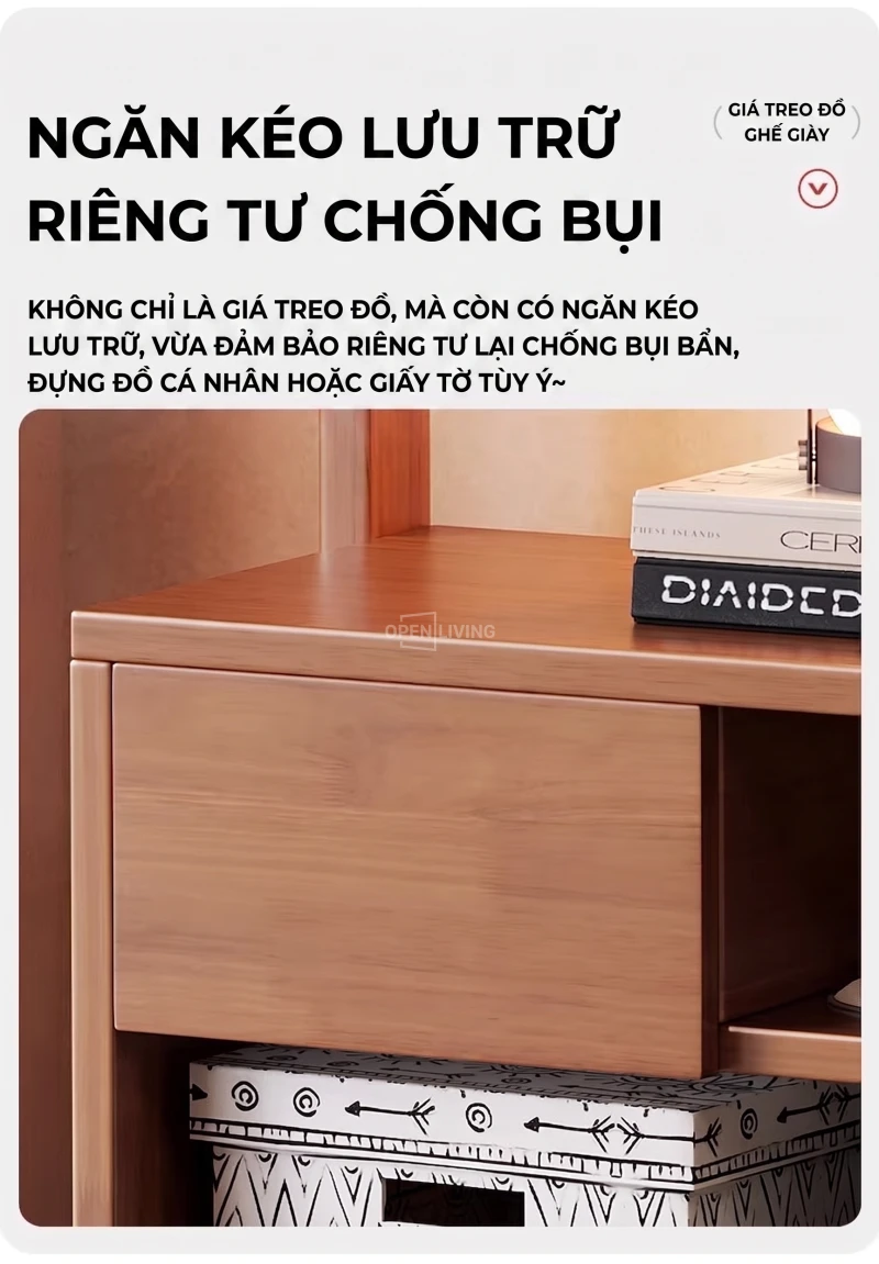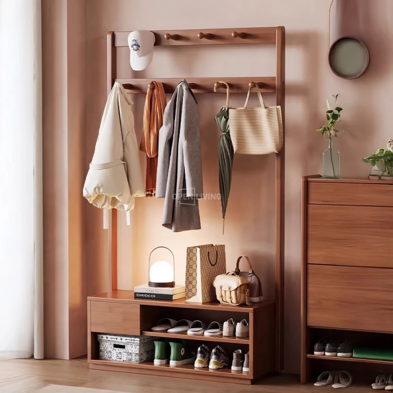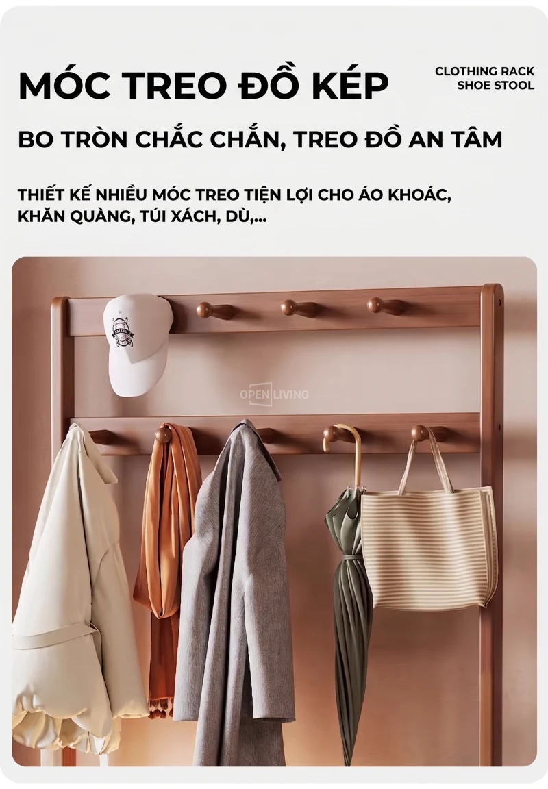 Kệ Gỗ Tự Nhiên Openliving Dáng Mỏng Gọn Kèm Giá Treo Đồ Cho Căn Hộ Nhỏ KG873