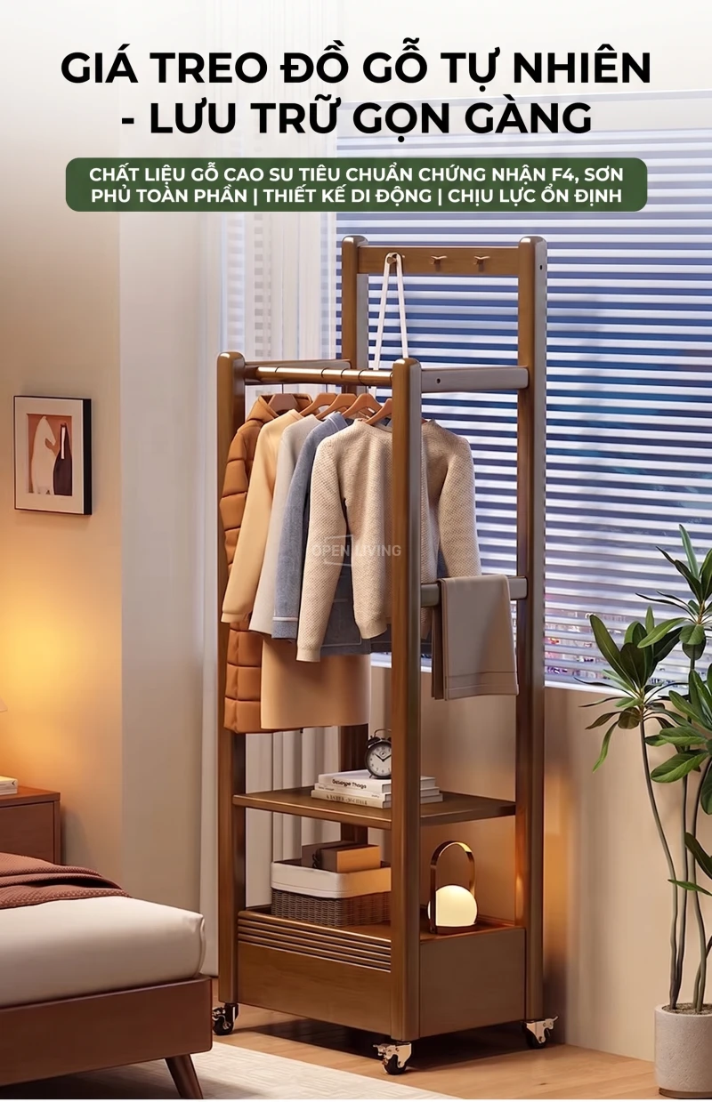 Kệ Gỗ Tự Nhiên Openliving Kết Hợp Tủ Kệ Cao Cấp Cho Phòng Ngủ Hiện Đại KG607