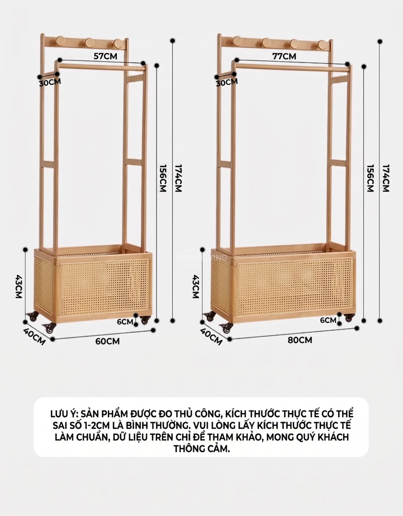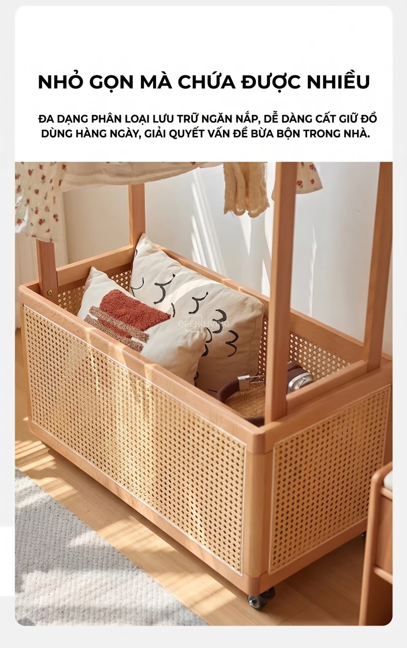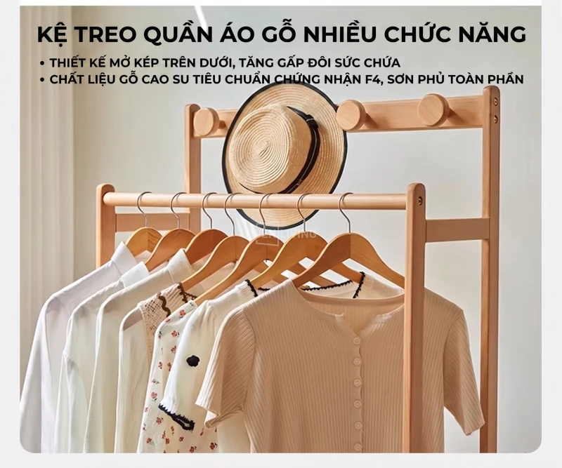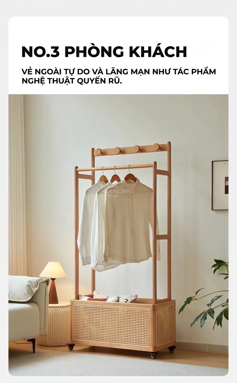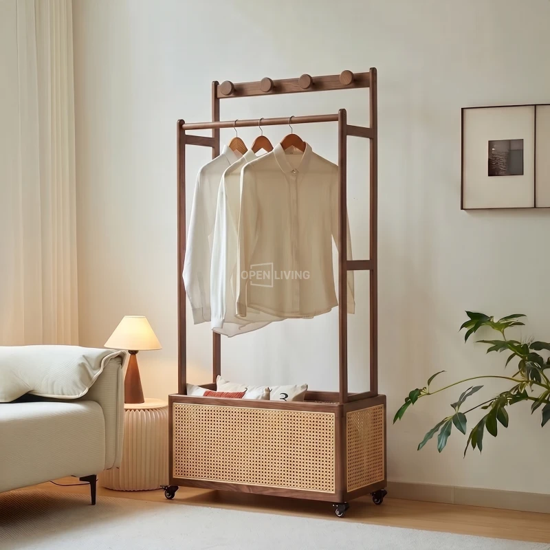 Kệ Gỗ Tự Nhiên Openliving Tích Hợp Giá Treo Đồ Và Kệ Trang Trí Đa Năng KG532