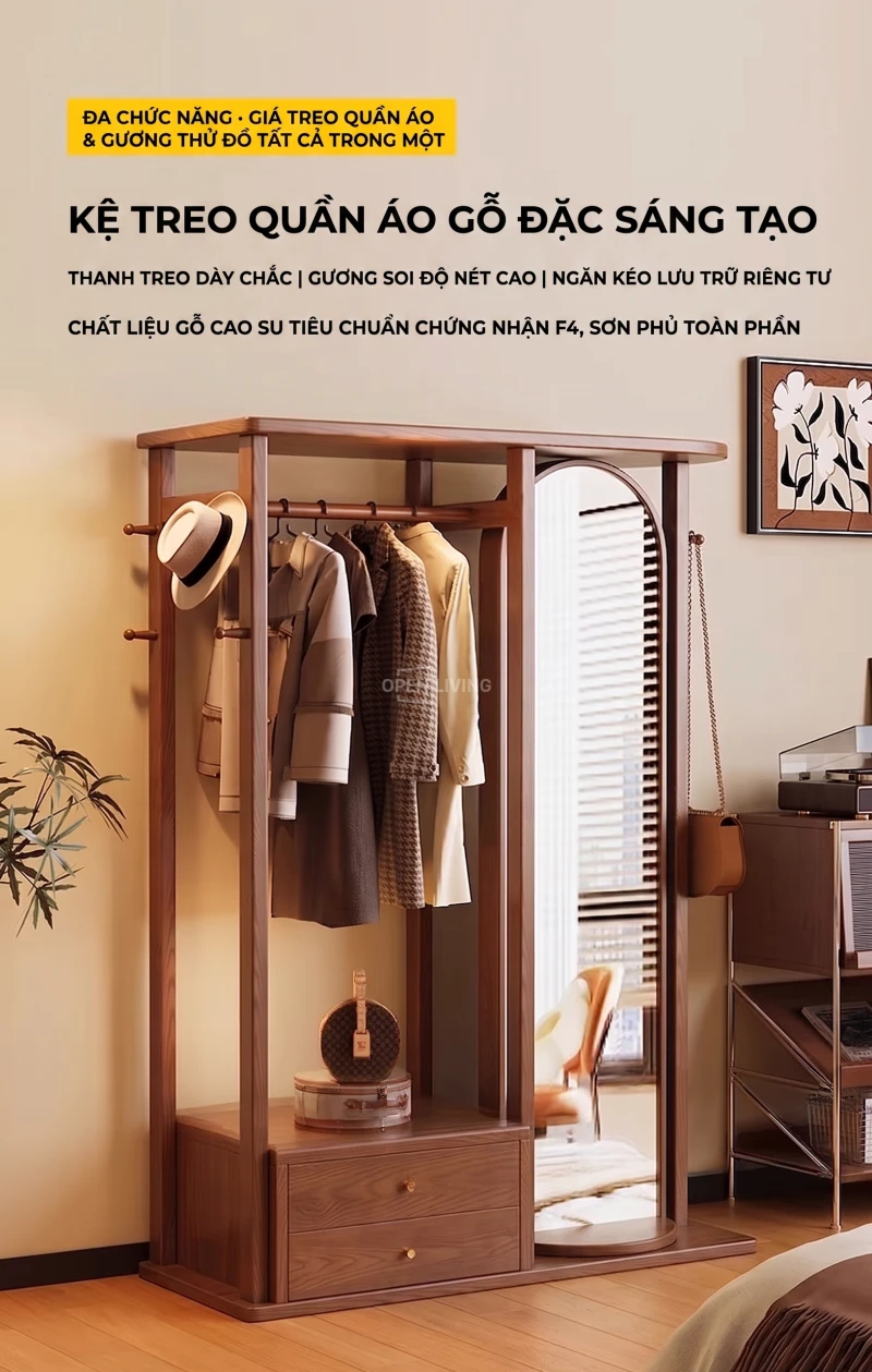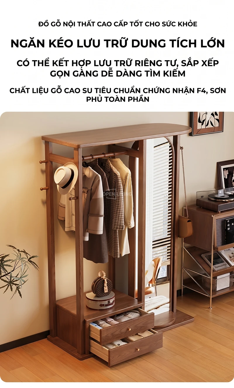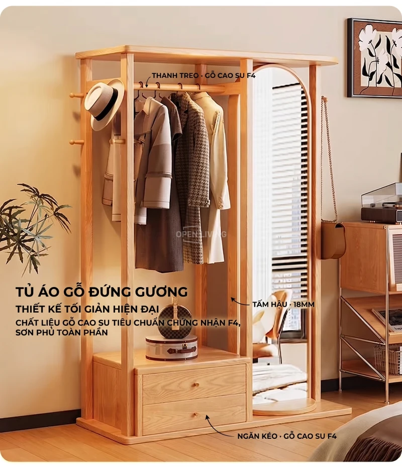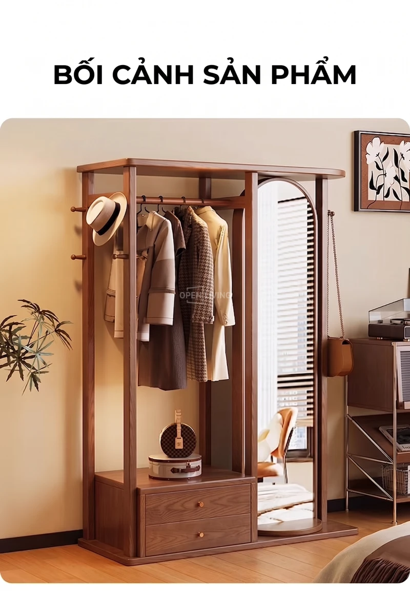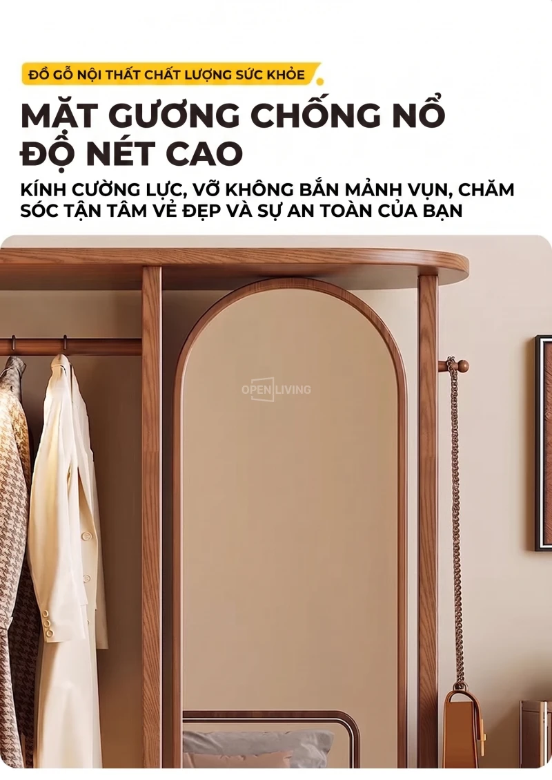 Kệ Gương Tủ Treo Quần Áo Gỗ Tự Nhiên Openliving Kèm Gương Soi Toàn Thân Cao Cấp KG903