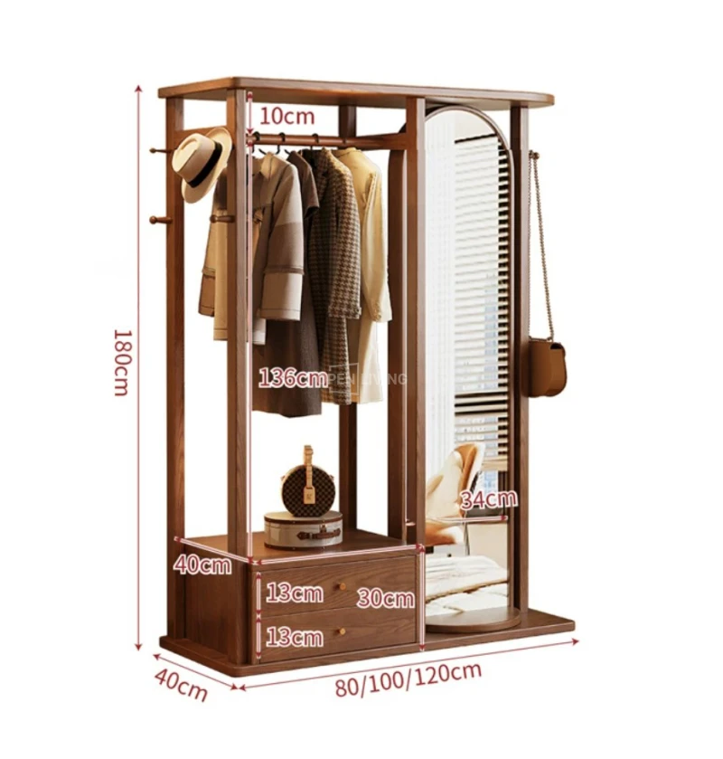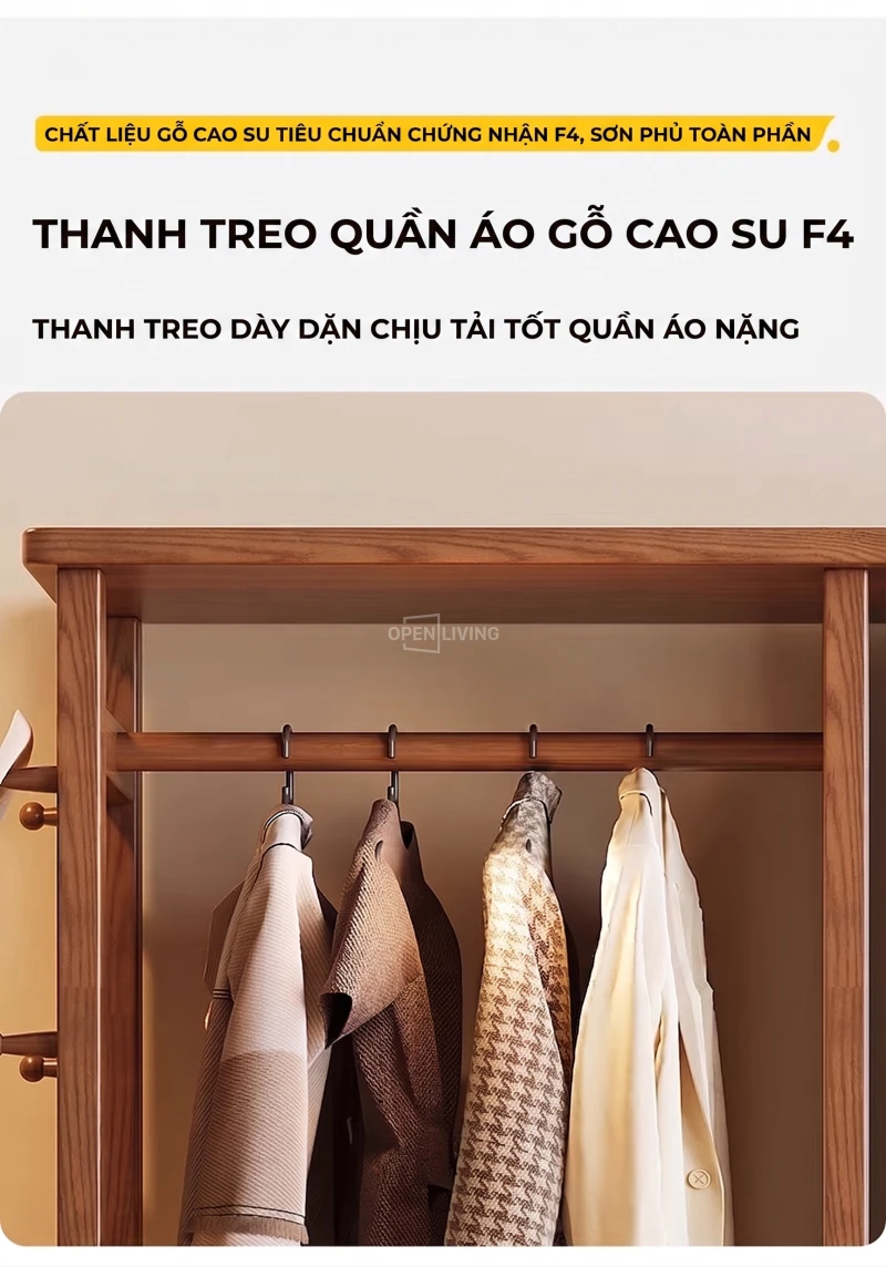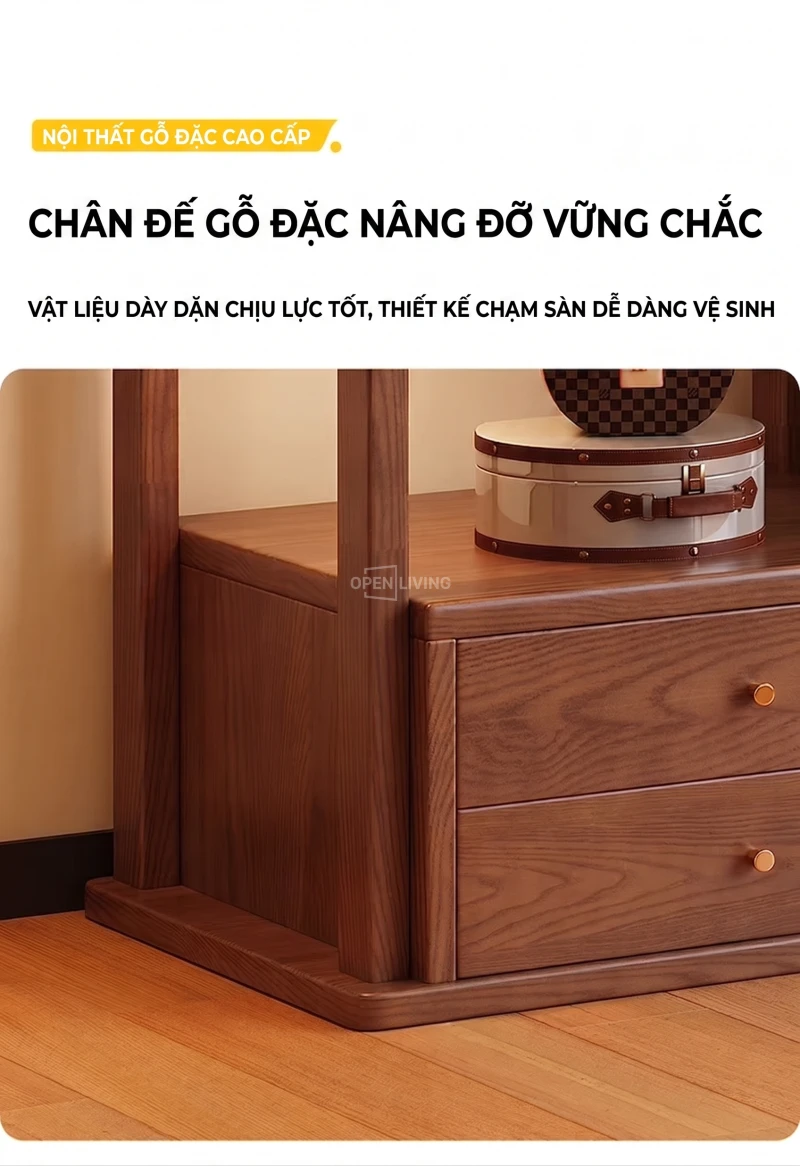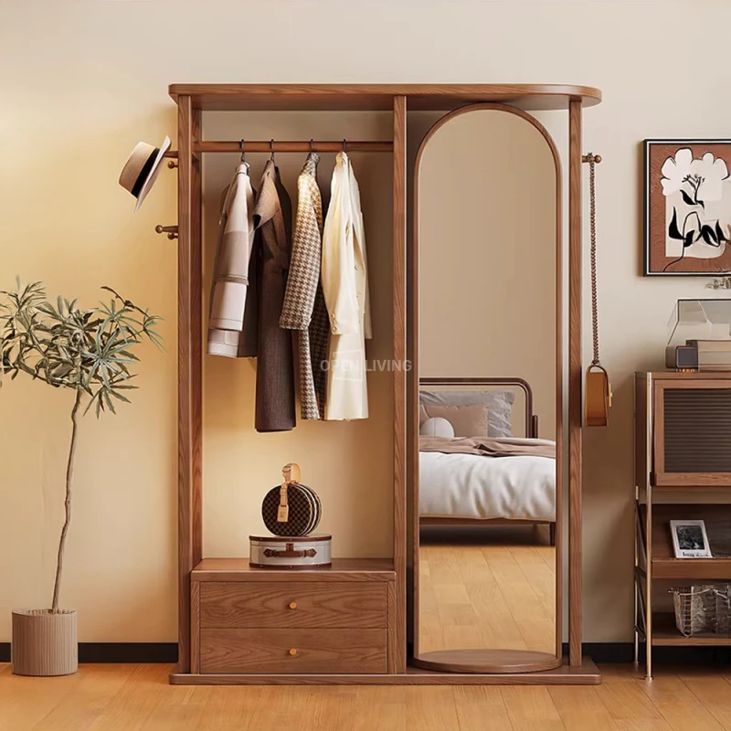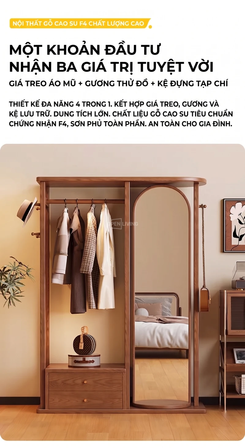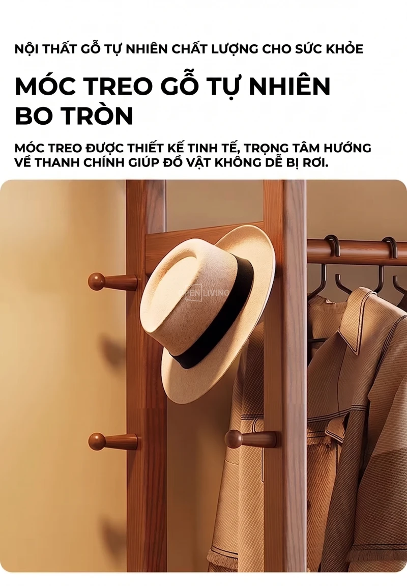 Kệ Gương Tủ Treo Quần Áo Gỗ Tự Nhiên Openliving Kèm Gương Soi Toàn Thân Cao Cấp KG903