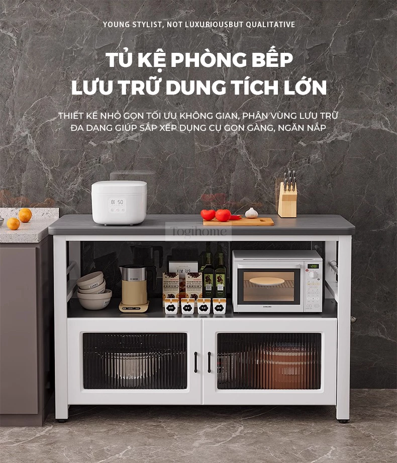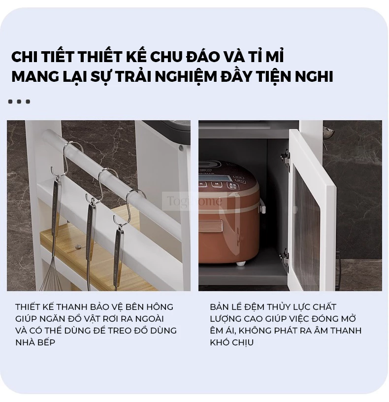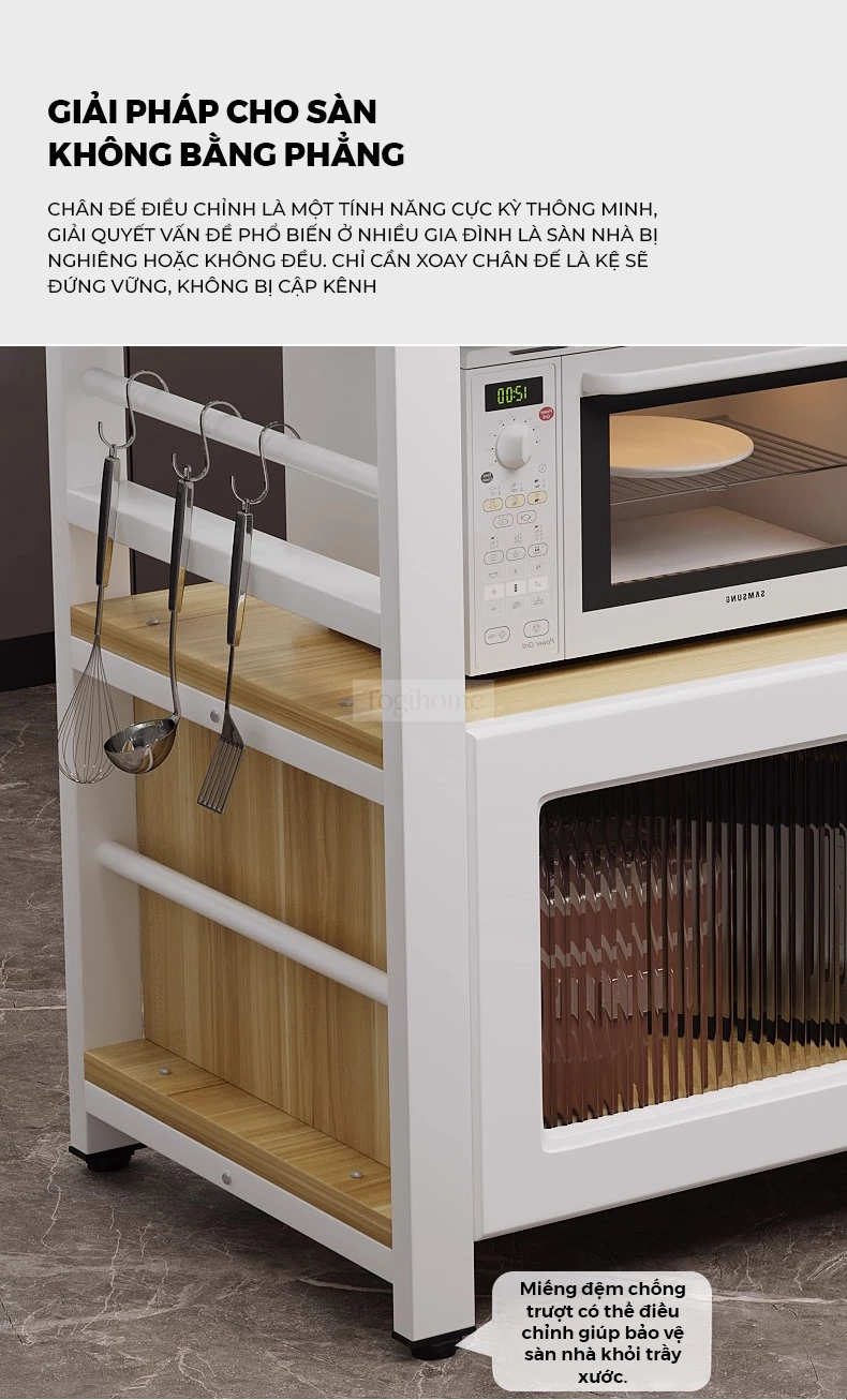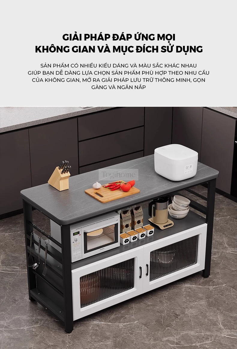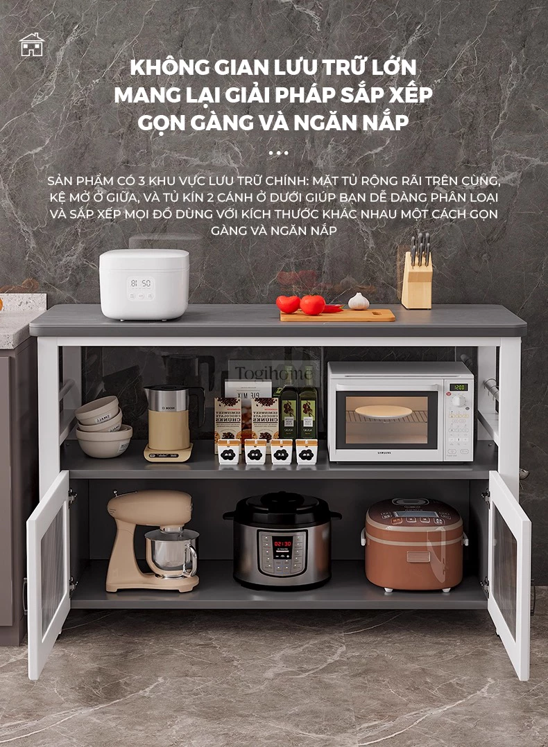 Kệ Thép Sơn Tĩnh Điện Cỡ Nhỏ Togismart Tích Hợp Ngăn Tủ Cánh Kính – Mã KT118 là giải pháp lưu trữ gọn gàng cho không gian bếp hiện đại, căn hộ nhỏ và khu vực nấu nướng đa năng. Sản phẩm sở hữu thiết kế thông minh với nhiều tầng để đồ, kết hợp tủ cánh kính giúp phân loại và bảo quản thiết bị bếp, gia vị, đồ gia dụng khoa học, dễ quan sát. Phần gỗ sử dụng MDF lõi xanh Vanachai tiêu chuẩn E1, không chứa formaldehyde, chống ẩm tốt, an toàn cho sức khỏe. Khung thép mạ kẽm Hòa Phát dày 1,2mm, sơn tĩnh điện Polyester bền màu, chịu lực cao, phù hợp sử dụng lâu dài.