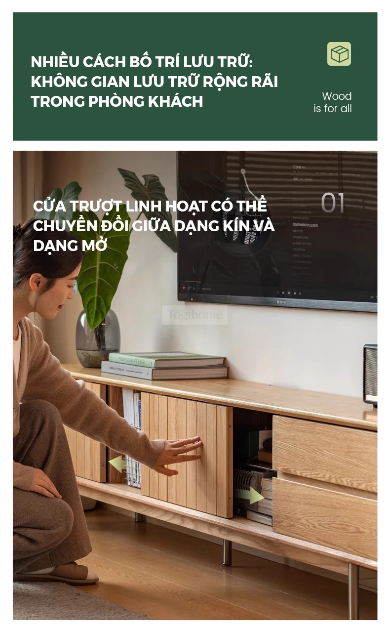 Kệ Tivi Gỗ Tự Nhiên Chân Thép Hiện Đại Togismart KTV 124