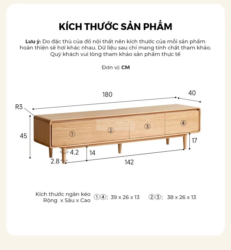 Kệ Tivi Gỗ Tự Nhiên Phong Cách Hiện Đại Togismart KTV 114