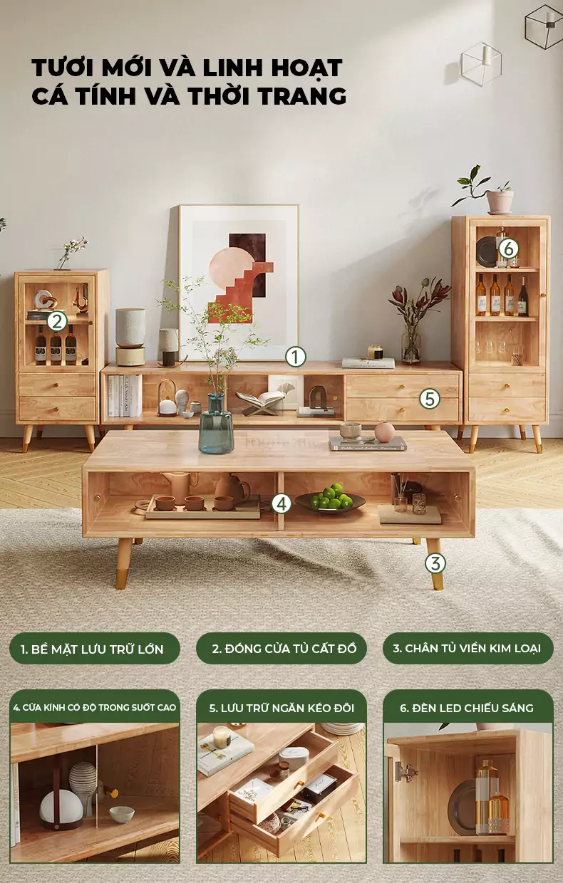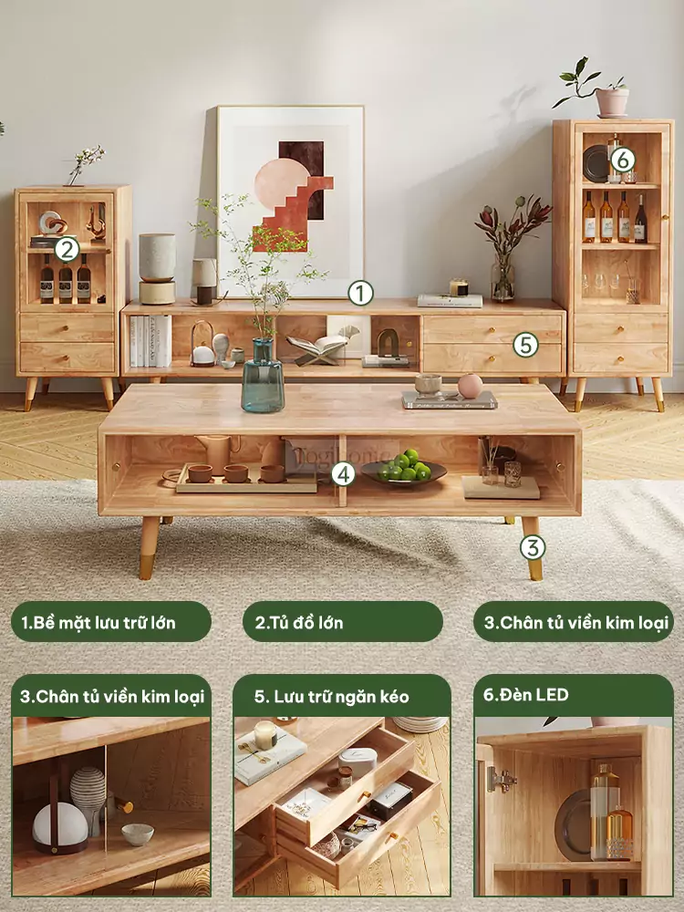 | Chất liệu | Gỗ cao su |