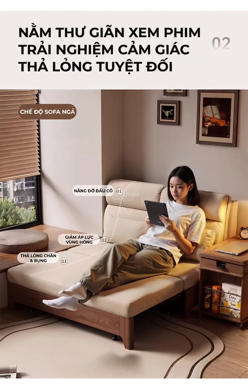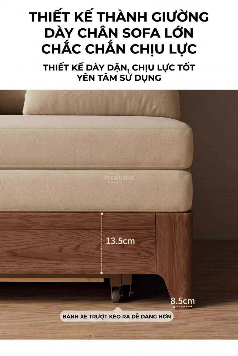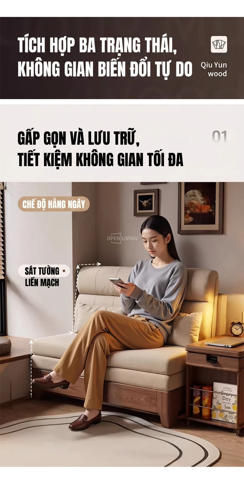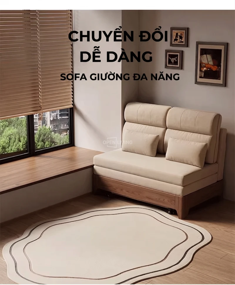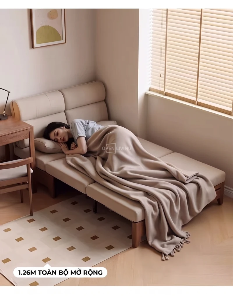 Sofa Bed Gỗ Tần Bì Nguyên Khối Openliving Tựa Lưng Cao Ôm Vai Chuyển Đổi Ngồi Ngả Nằm Linh Hoạt - Mã SFG782