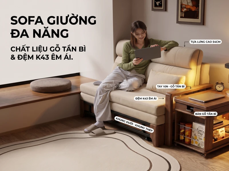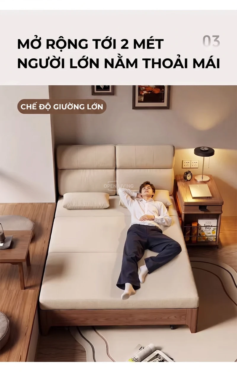 Tối ưu không gian sống với sofa giường OpenLiving, sự kết hợp hoàn hảo giữa thiết kế sofa hiện đại, tinh tế và tính năng giường ngủ 2 trong 1 đầy tiện dụng. Sản phẩm được thiết kế thông minh theo mô hình lắp ráp linh hoạt, giúp bạn có thể dễ dàng tự hoàn thiện ngay tại nhà.