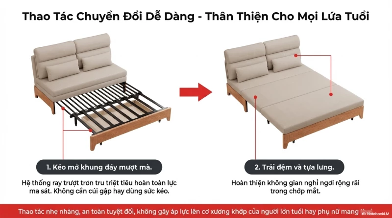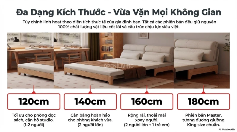 Sofa Bed Openliving Gỗ Tần Bì Nguyên Khối Tựa Lưng Cao Ôm Vai Chuyển Đổi Ngồi Ngả Nằm Linh Hoạt - Mã SFG781
