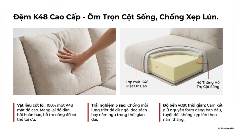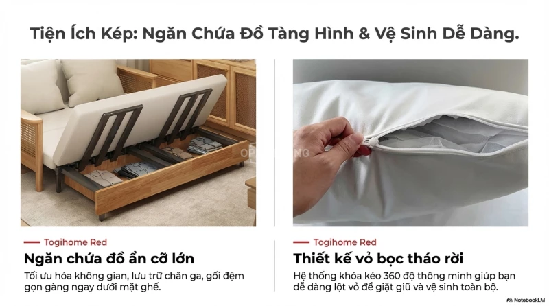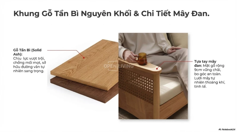 Sofa Bed Openliving Tích Hợp Ngăn Lưu Trữ Ẩn Dưới Gầm Tay Vịn Cong Mềm Đệm K48 Chống Mỏi Lưng Thiết Kế Phối Mây Đan - Mã SFG531