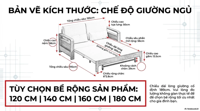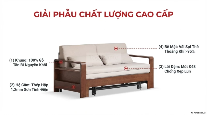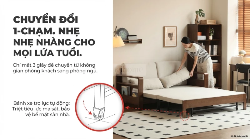 Sofa Bed Togismart ELMOR Gỗ Tần Bì Nguyên Khối Tựa Ghế Thư Giãn Mở Giường Nhanh Đệm K48 Chống Xẹp - Mã SFG508