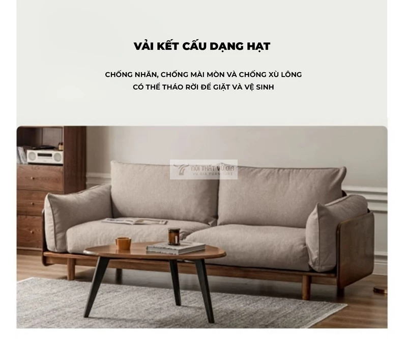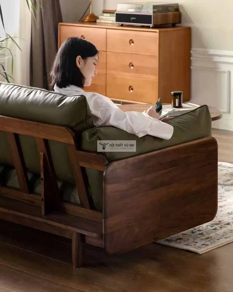 Sofa gỗ tự nhiên kết hợp nệm cao cấp, hiện đại SB35