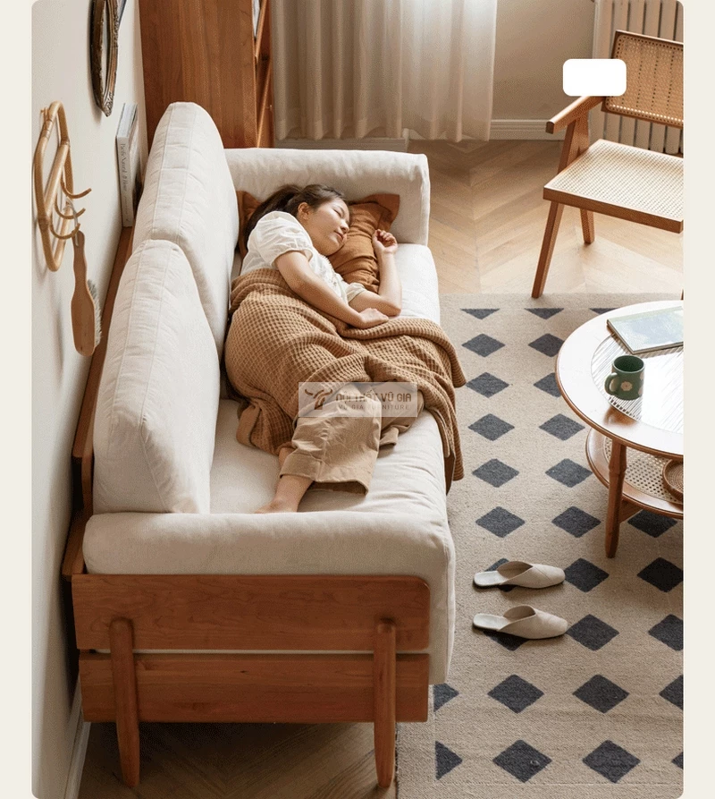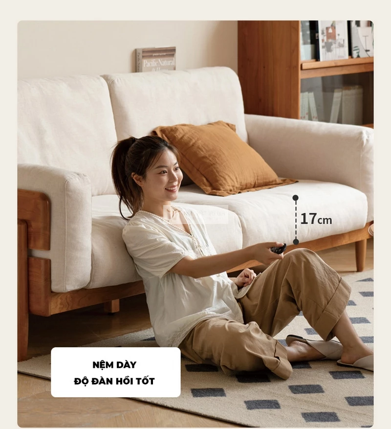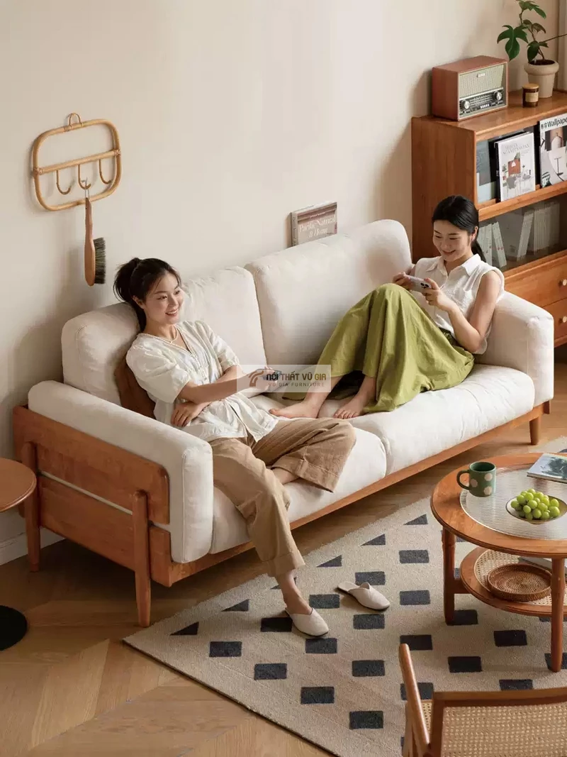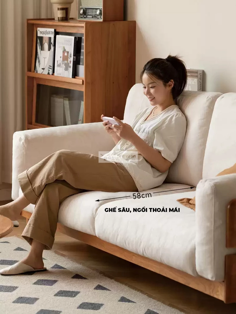 Sofa gỗ tự nhiên thiết kế thanh lịch, nệm cao cấp SB37