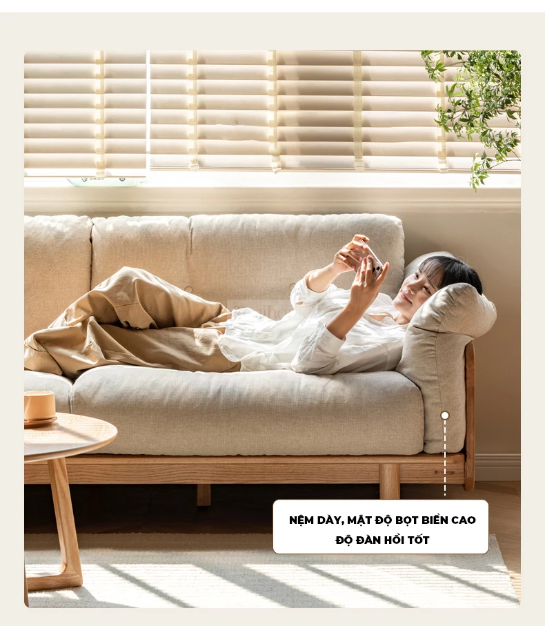 Sofa Gỗ Tự Nhiên Togismart Bọc Vải Êm Ái Cho Phòng Khách - SF239
