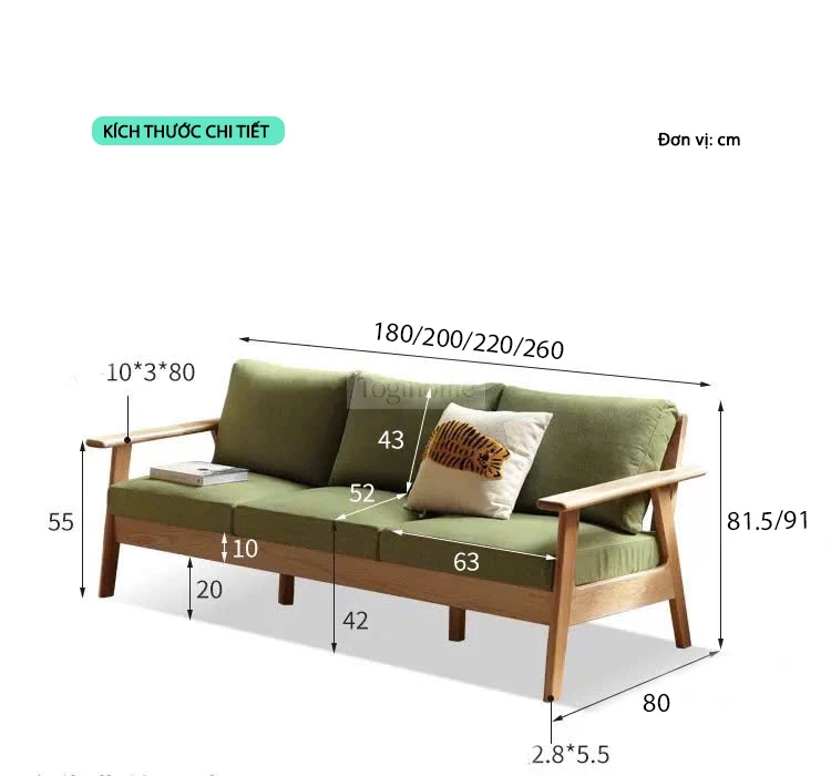 Sofa văng gỗ tự nhiên Togismart CPK 011, phong cách Moku Nhật Bản