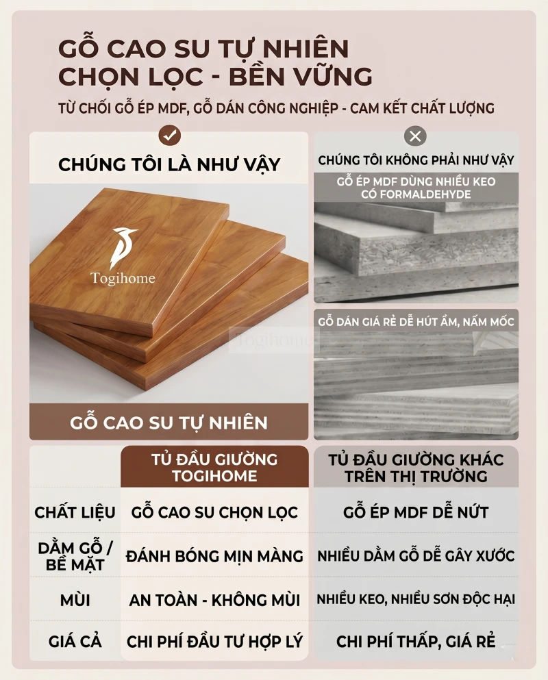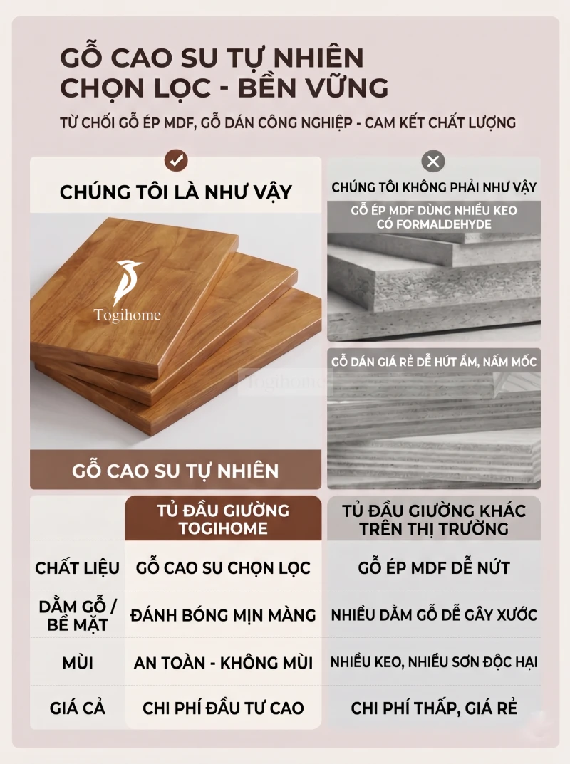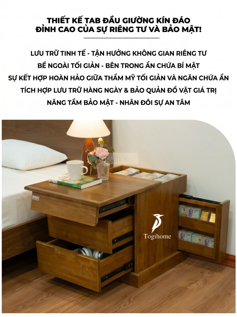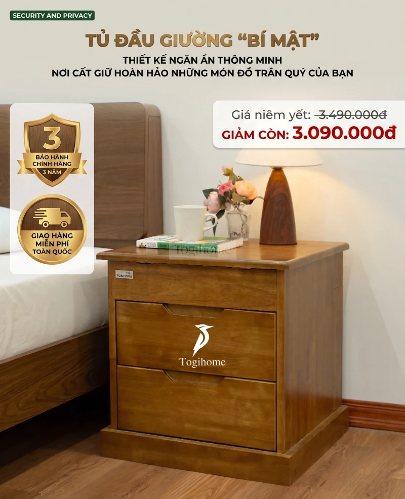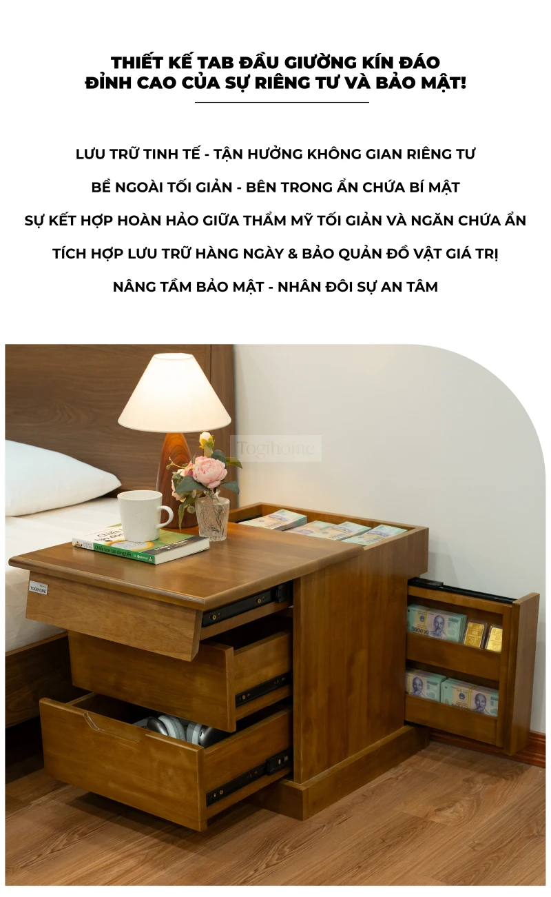 Tab đầu giường Togismart chế tác hoàn toàn từ gỗ cao su tự nhiên . Với ưu điểm thớ gỗ dày, khả năng chịu lực tốt và chống mối mọt vượt trội, sản phẩm mang lại vẻ đẹp ấm cúng, bền bỉ theo thời gian. Thiết kế tinh tế, hiện đại, là lựa chọn an toàn, thân thiện cho không gian ngủ.