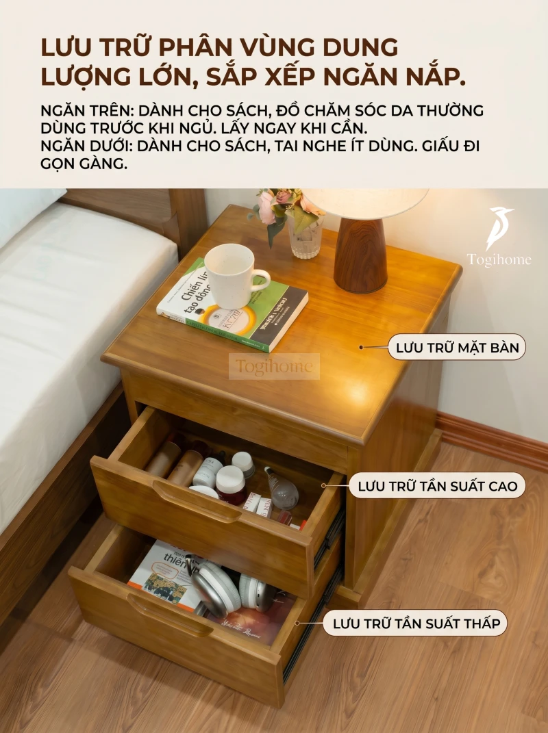 Tab Đầu Giường Gỗ Tự Nhiên - Tủ Đầu Giường Hiện Đại Đa Năng - Togihome TAB111