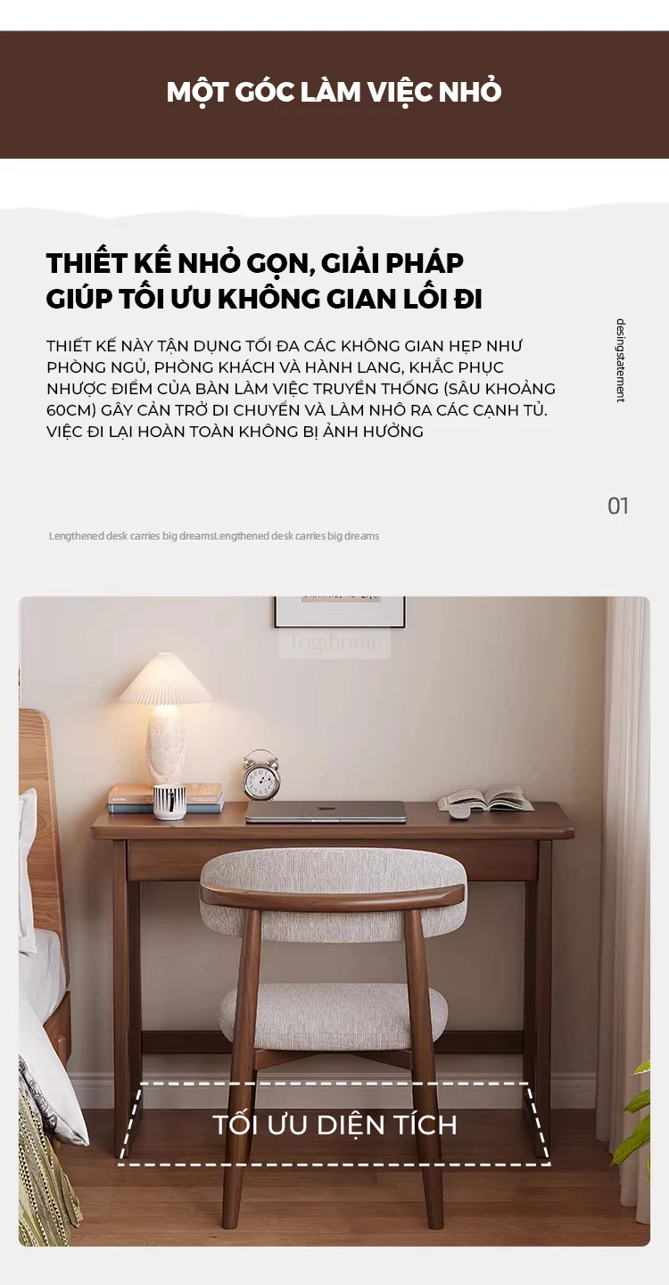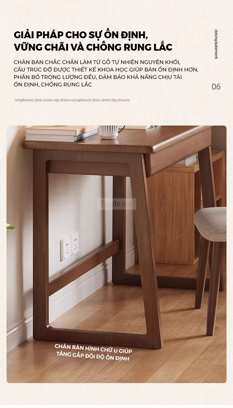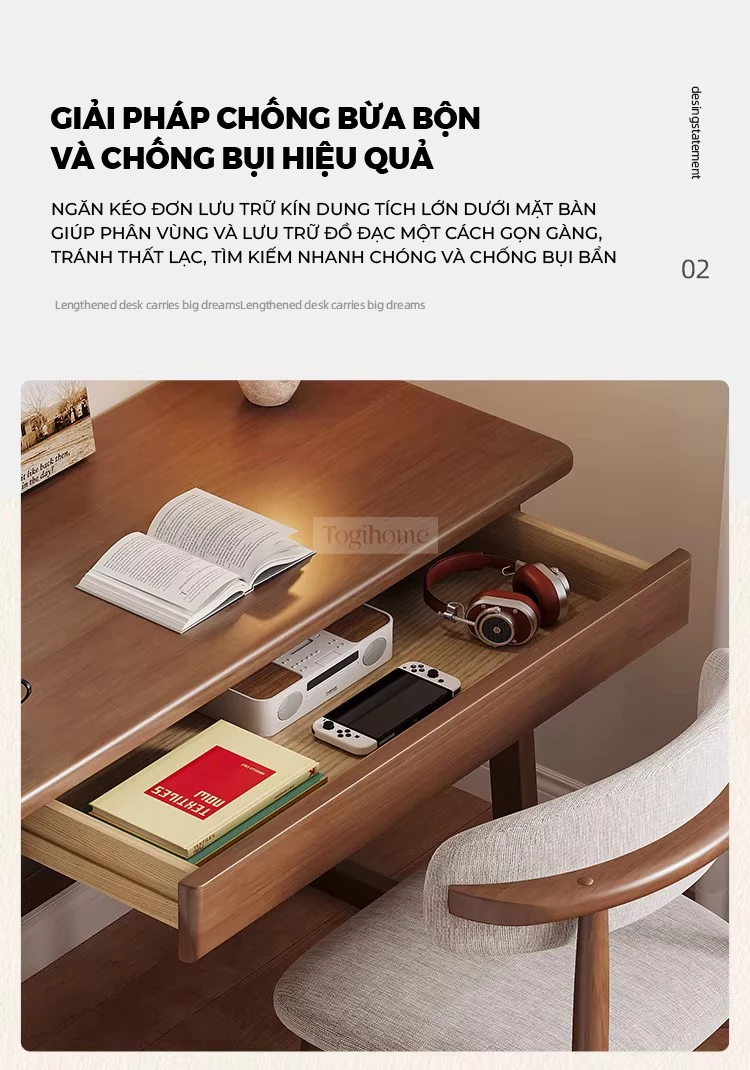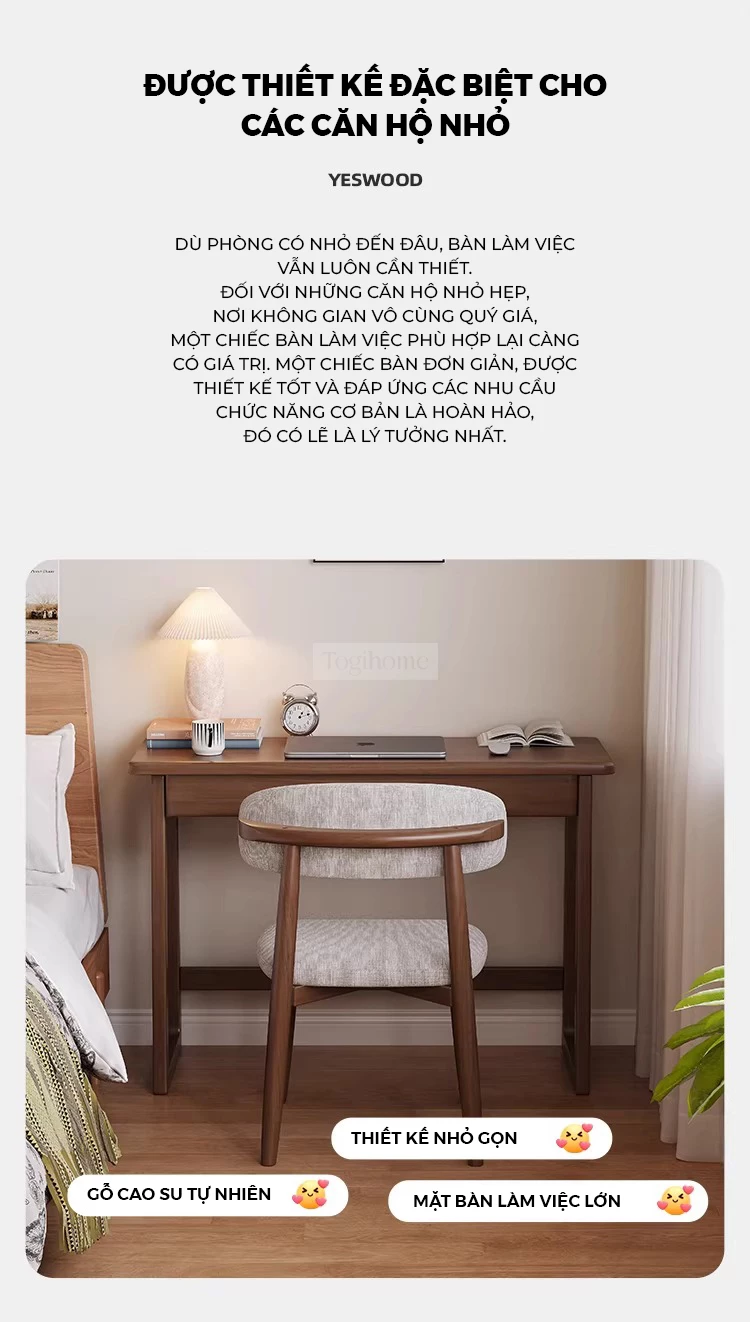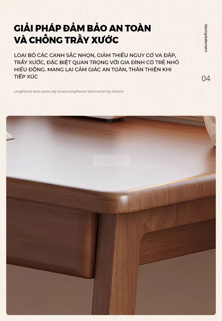 Togismart - Bàn Làm Việc Gỗ Tự Nhiên Bo Cạnh An Toàn, Ngăn Kéo Trượt Êm, Thiết Kế Tối Giản Nhật Bản - BTN742