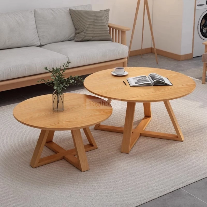 Bàn Trà Gỗ (tùy chọn 3 kích thước: D45cm / D60cm / Combo 2 Bàn) được sắp xếp lại theo diện tích căn hộ.
