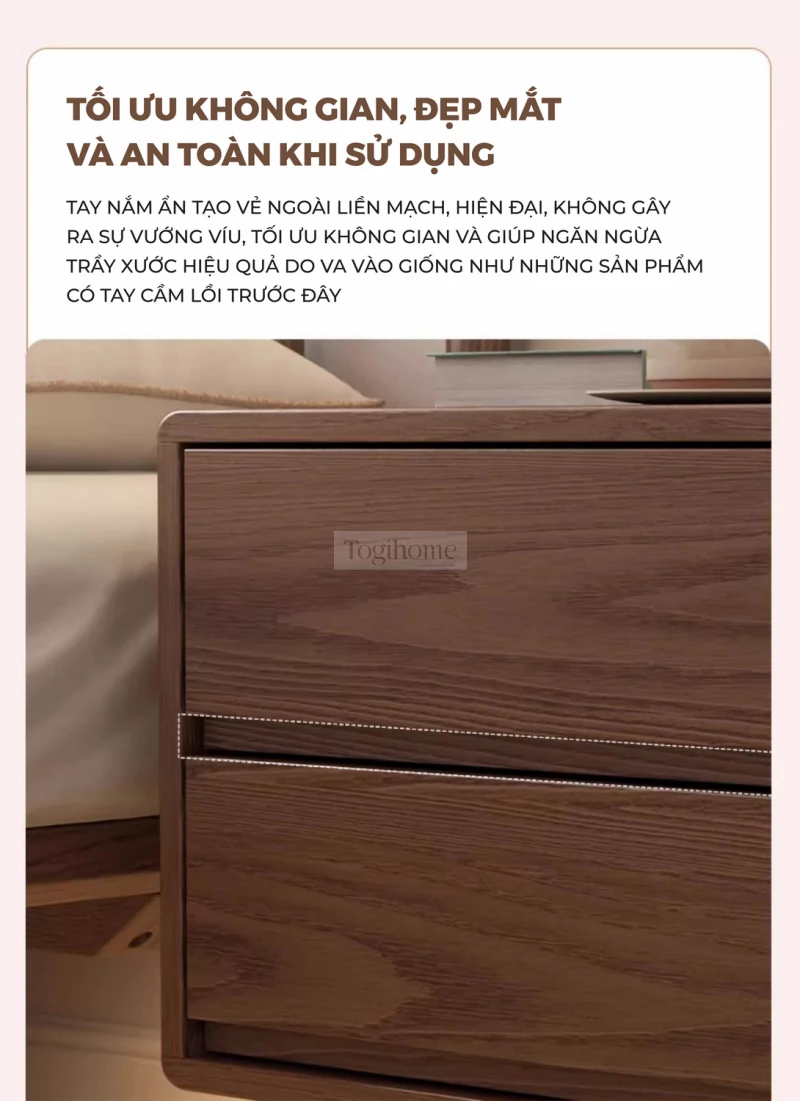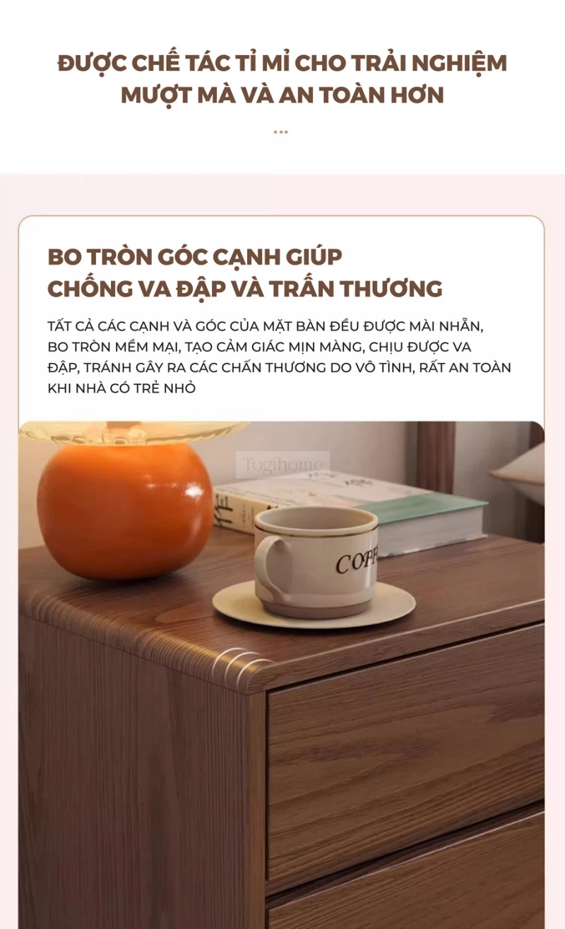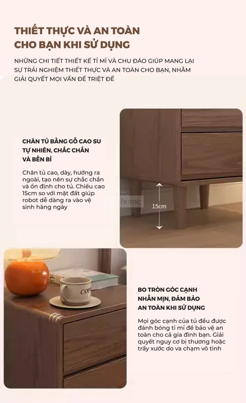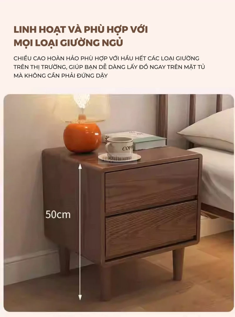 Tủ Đầu Giường Gỗ Tự Nhiên CV312 là món đồ nội thất lý tưởng để hoàn thiện không gian phòng ngủ của bạn, mang đến sự kết hợp hoàn hảo giữa tính thẩm mỹ, tiện nghi và vẻ đẹp mộc mạc của gỗ tự nhiên. Được chế tác từ chất liệu gỗ tự nhiên cao cấp, chiếc tủ này không chỉ nổi bật với độ bền vượt trội mà còn mang đến cảm giác ấm áp, gần gũi với thiên nhiên. Với thiết kế nhỏ gọn, tinh tế cùng các ngăn kéo tiện lợi, CV312 giúp bạn cất giữ gọn gàng các vật dụng cá nhân như sách, đèn ngủ, điện thoại, giữ cho phòng ngủ luôn ngăn nắp. Đây là điểm nhấn tinh tế, giúp không gian nghỉ ngơi của bạn thêm phần ấm cúng và sang trọng.