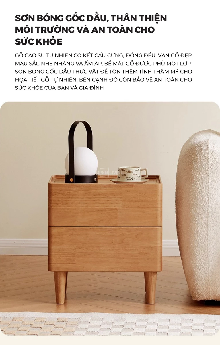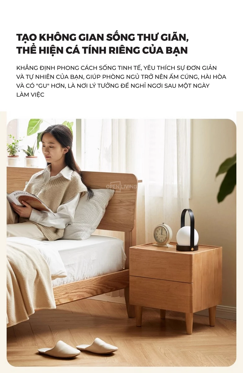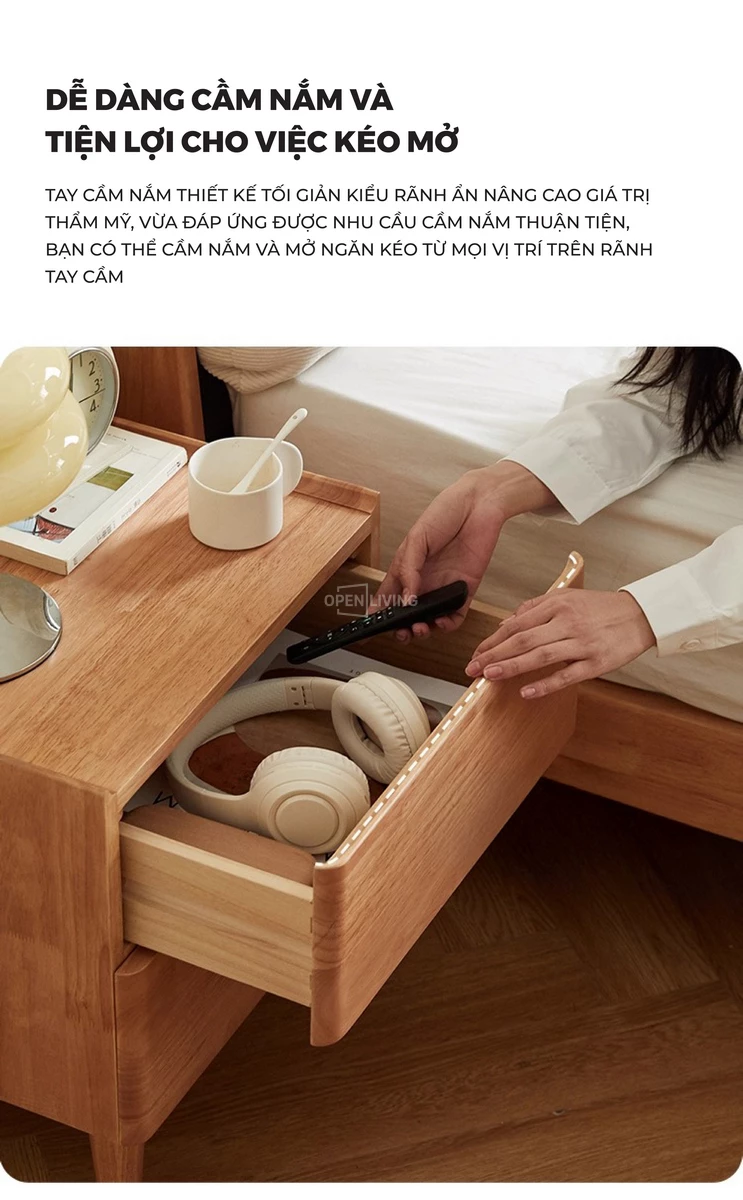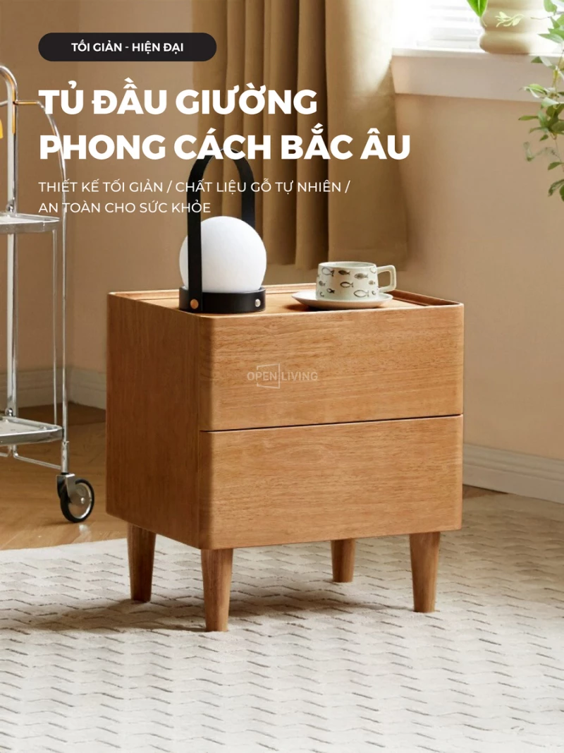 Tủ Đầu Giường Gỗ Tự Nhiên Nordic Curve - Openliving 001