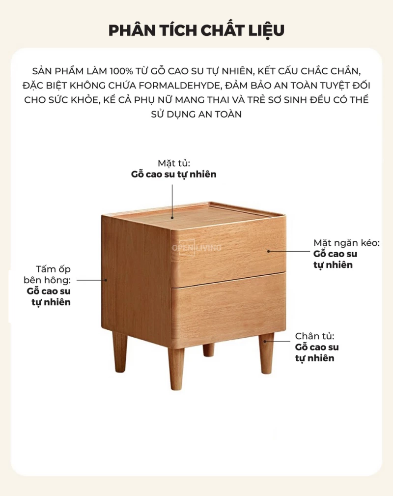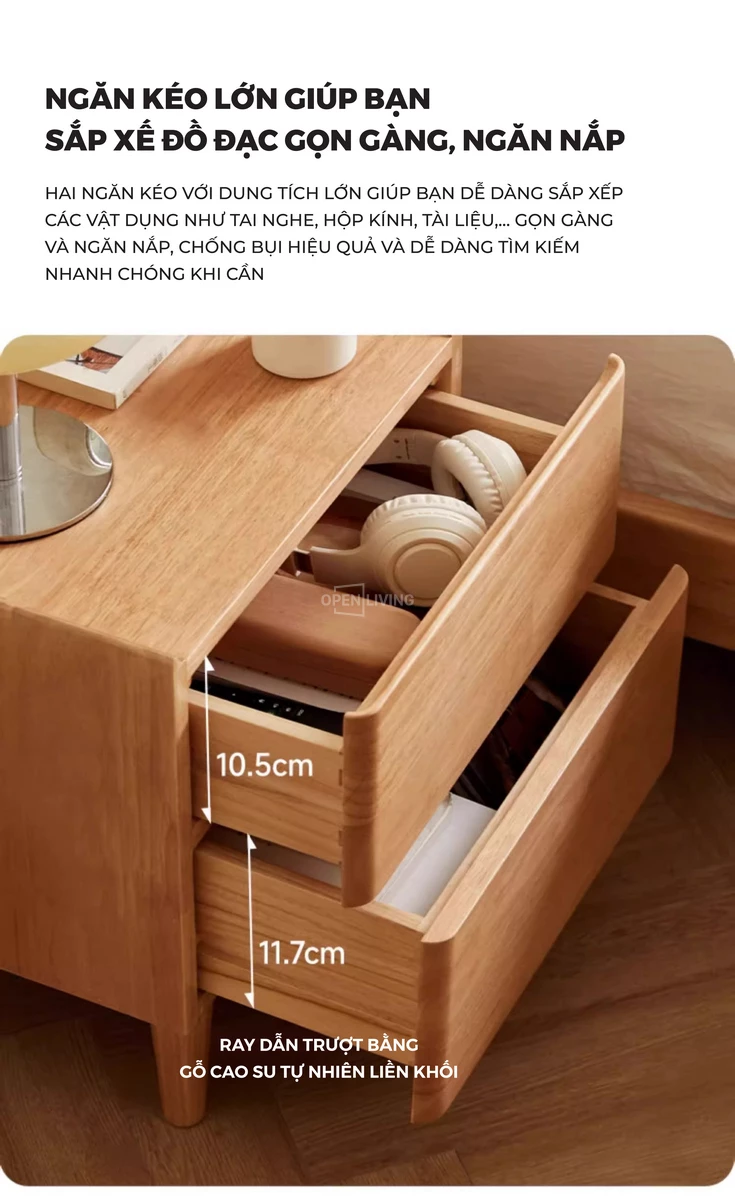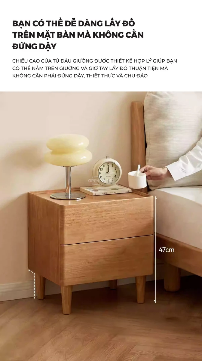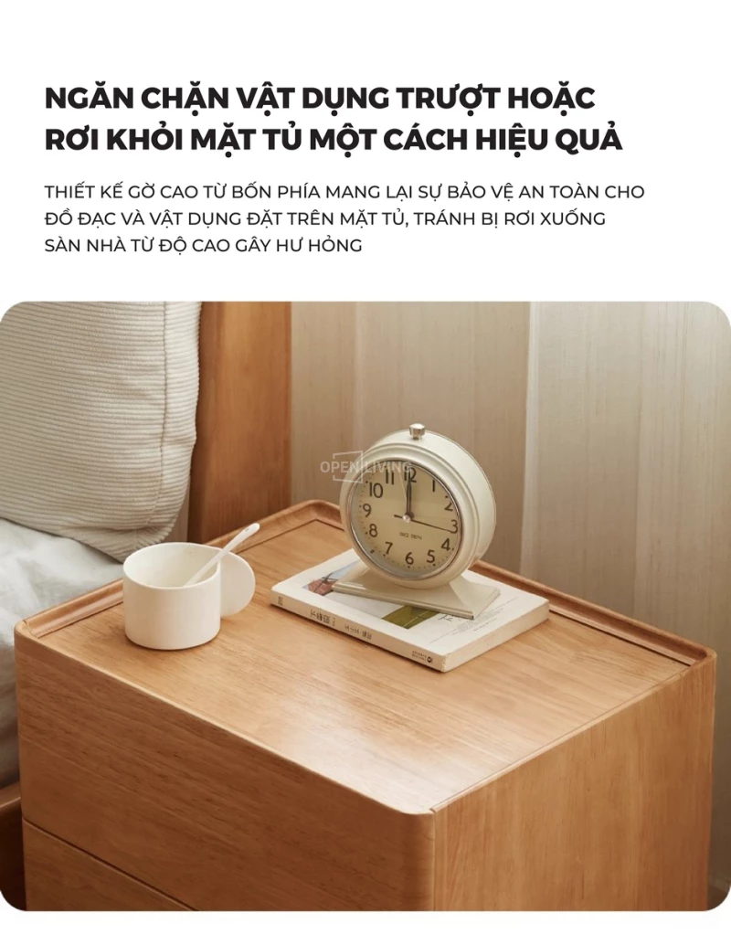 Tủ Đầu Giường Gỗ Tự Nhiên Nordic Curve - Openliving 001