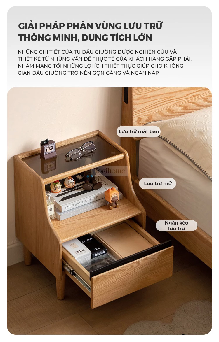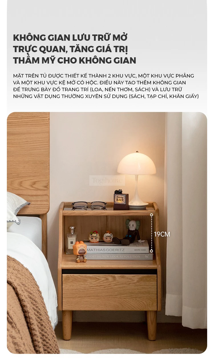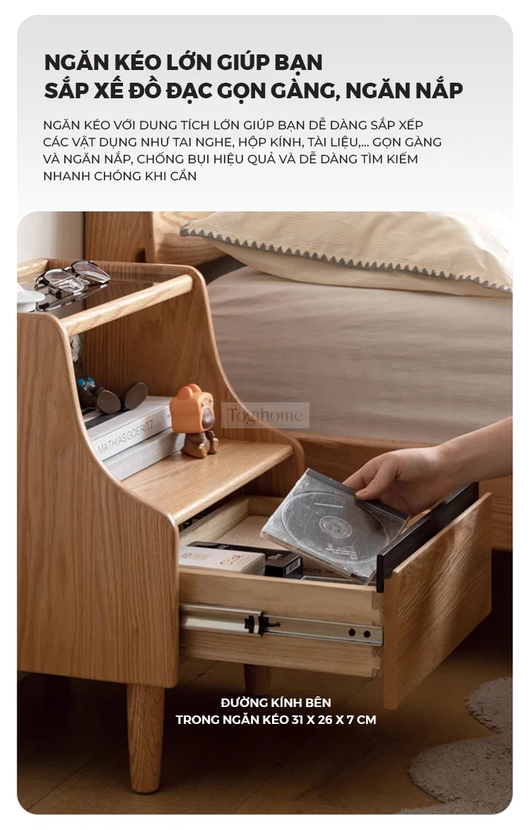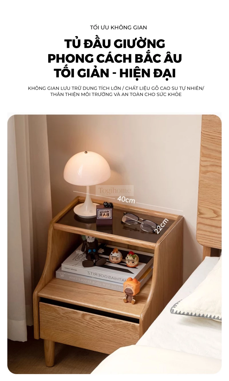 Tủ Kệ Tab Đầu Giường Gỗ Tự Nhiên Tối Giản Đa Năng Togismart TDG 232